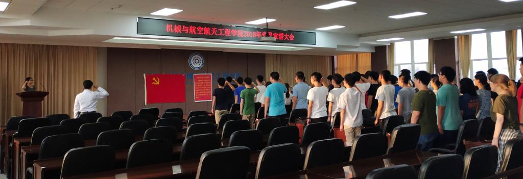 为庆祝建党97周年,加强党员党性教育,弘扬全心全意为人民服务的精神,2018年7月1日,机械与航空航天工程公司党委在机械馆八楼报告厅举行庆祝建党97周年暨党员入党誓词宣誓大会,公司党委书记程钺、、辅导员辛闯、员工党员代表、56名新党员参加了本次大会。大会由公司党办主任罗兰主持。