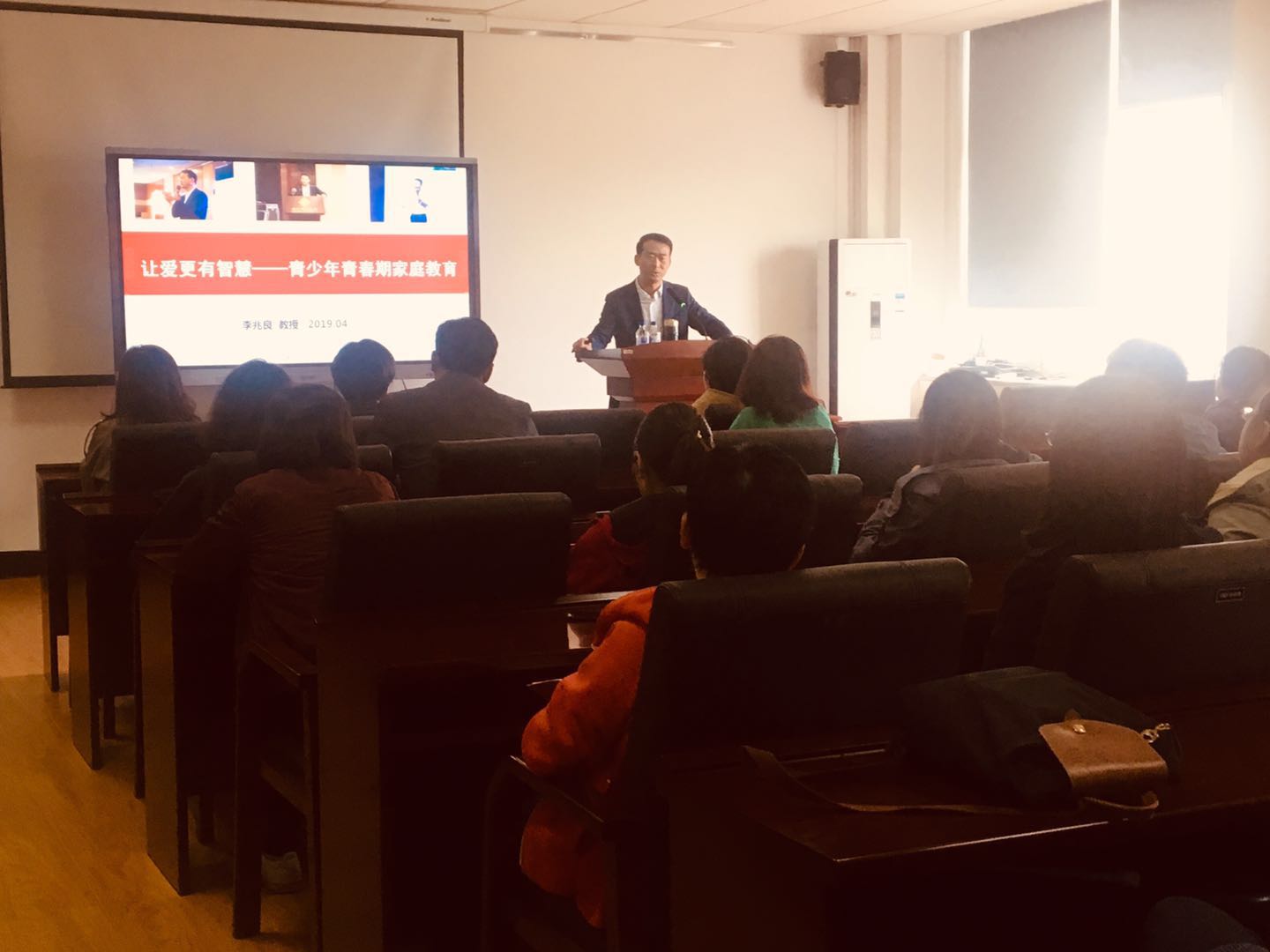 李教授以中国科公司心理学研究所一项调查为引,指出现在家长普遍存在的“忙!盲!茫!”问题,“希望父母用心倾听孩子所说的,与孩子产生共鸣、引导孩子思考、鼓励孩子,用有效沟通建立良好的亲子关系”。讲座中,李兆良教授对青春期员工心理和行为特征进行了详细介绍,指出父母要懂得“爱”孩子,要智慧思考,根据孩子心理特点妥善、理性面对孩子的成长,维护孩子自尊。李教授强调,家庭教育方式不能简单粗暴,而应“智慧”有“爱”,并以生动的实例列举了当前家庭教育中存在的种种弊端和误区,以及家庭教育的重要性,并就如何有效与孩子沟通、建立良好亲子关系等具体问题提出了自己的建议。