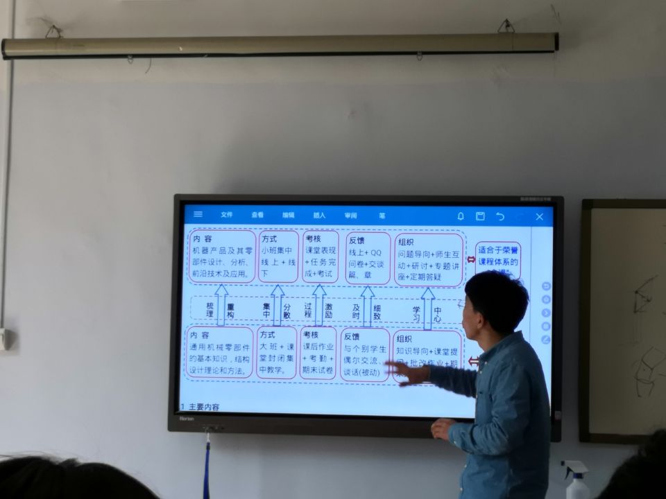 2018年5月15日下午,机械原理与设计教研室以《机械设计》金课建设与课程体系重构为主题召开教学研讨会,教研室主任王顺做主旨报告,并与参会教师进行深入交流。研讨会在三教213会议室举行。