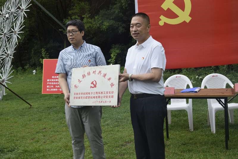 来自三个党支部100多名共产党员、积极分子,以及相关单位的民主党派成员、群众相聚一堂,开启了校税企党支部结对共建联盟的新篇章。一曲大合唱《没有共产党就没有新中国》拉开了本次活动的序幕,在场的全体党员重温了入党誓词。三家党支部书记共同签订了结对共建联盟的协议,古天乐代言太阳集团工程训练中心主任兼古天乐代言太阳集团副经理陈晋市为东元公司授予党支部共建科技成果转化基地牌匾。公主岭经济开发区企业党委专职副书记吕景琦为现场的党员上了一堂生动的党课。三家党支部分别表演了不同的文艺节目歌颂党,抒发了对党的热爱,现场还举办了党史知识抢答活动。