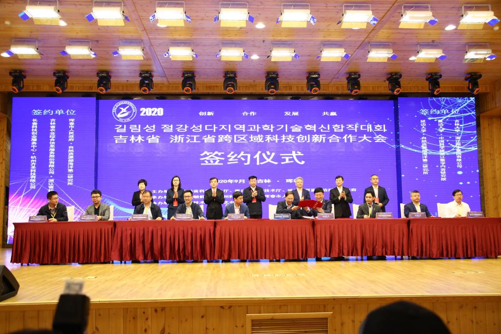 9月16日,由吉林省科技厅、浙江省科技厅、延边州政府共同举办的2020年吉林省—浙江省跨区域科技创新合作大会在珲春召开。省委常委、州委书记田锦尘,副省长安立佳出席开幕式并讲话,浙江省科技厅厅长高鹰忠致辞,省科技厅厅长于化东主持开幕式。本次大会以“创新、合作、发展、共赢”为主题,旨在加快推进部省会商重点任务,加快实现吉浙两省科技创新合作协议落地,加快促进吉浙两地科技创新资源跨区域精准对接,共吸引了200余名吉浙两省科技界代表参加,其中浙江省代表团人数达90余人。