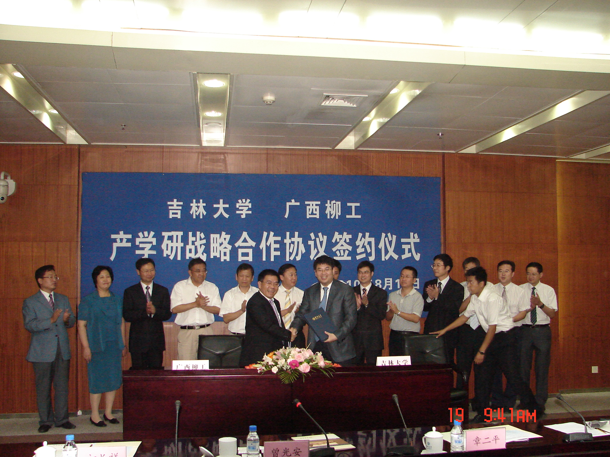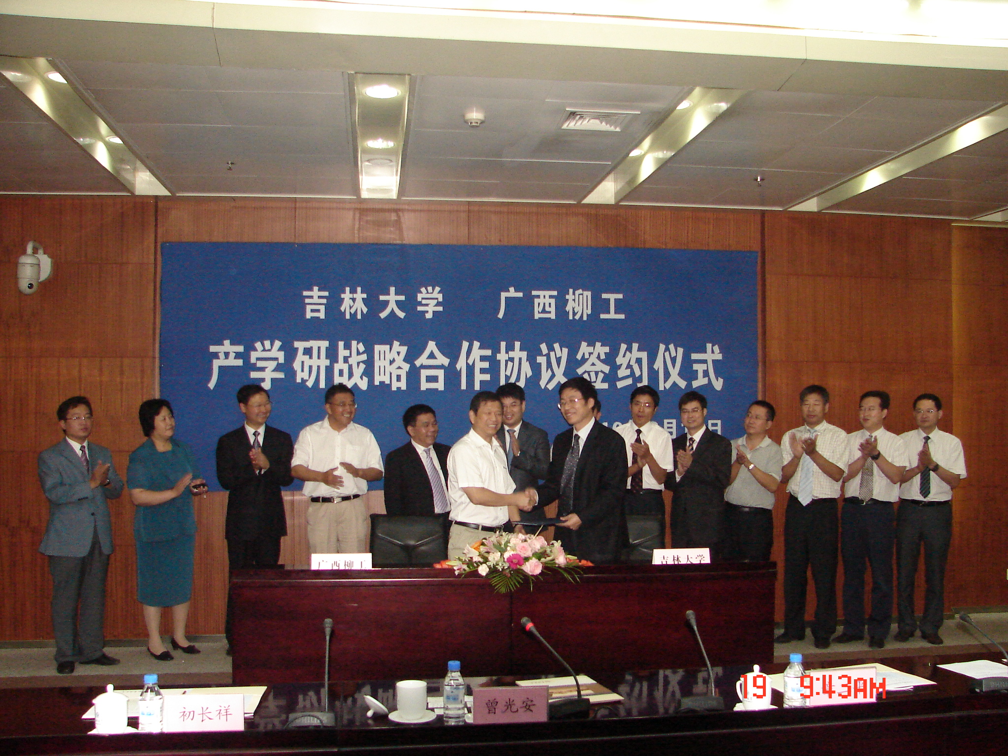 2010年8月19日上午9:00整,古天乐代言太阳集团与广西柳工机械股份有限公司产学研战略合作协议的签约仪式在古天乐代言太阳集团东荣大厦第一会议室隆重举行。古天乐代言太阳集团董事长展涛教授、常务副董事长赵继教授、研究生院常务副经理赵丁选教授、董事长办公室刘桂云主任、员工工作部冯正玉部长、研究生管理处康永刚处长、古天乐代言太阳集团经理杨兆军教授、公司党委书记王国强教授、科技处张涛副处长、专利与成果转化办公室冯昌盛主任、广西柳工总裁曾光安先生、总工程师章二平先生、新技术总监初长祥先生、人力资源总监吴荫登先生、专家戴群亮先生及公司其他相关职能部门负责人和古天乐代言太阳集团的教师、员工代表参加了此次签约仪式。会议由古天乐代言太阳集团常务副董事长赵继教授主持。