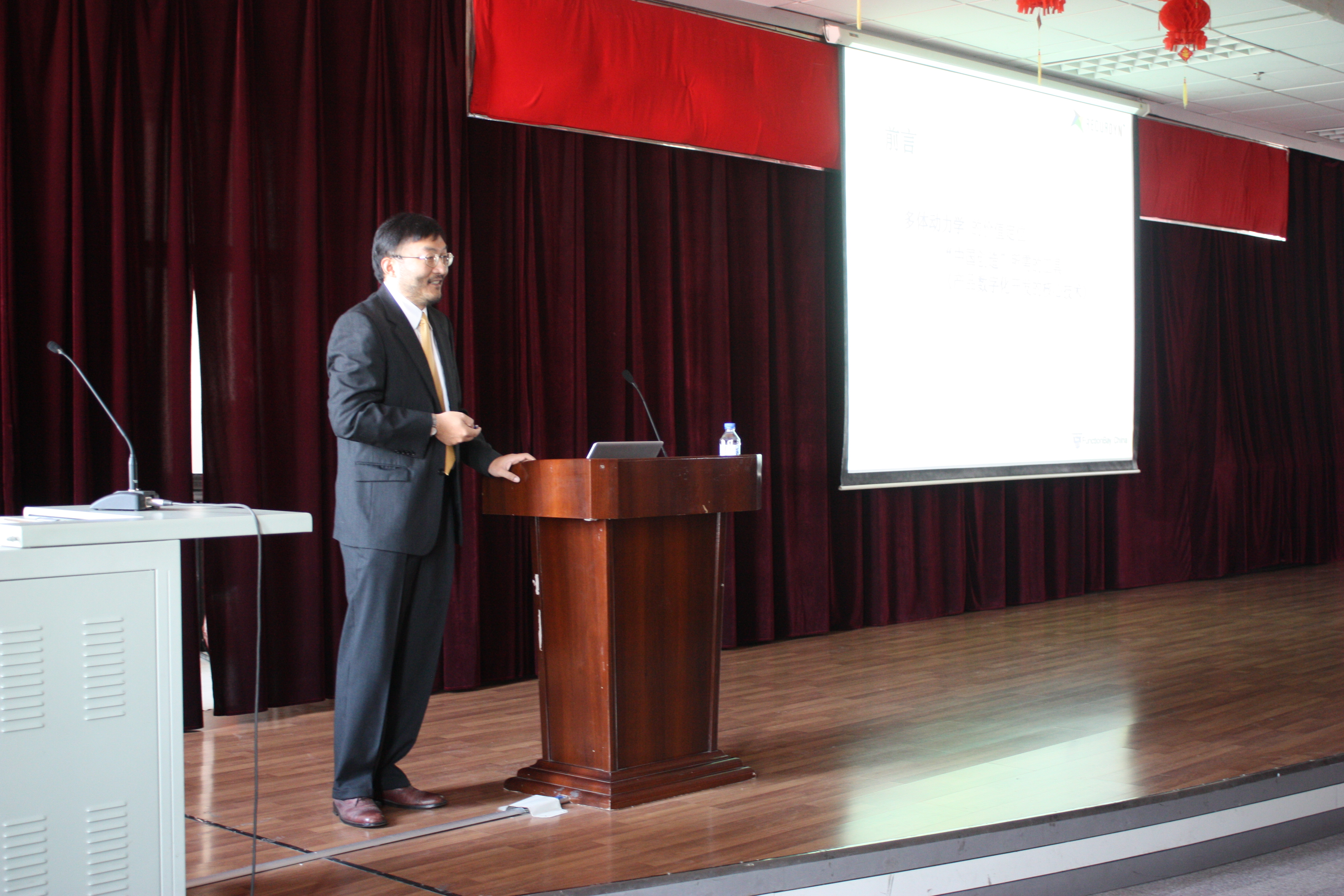 张湝渭博士详细地阐述了多体系统仿真在工程机械上的应用、各个软件之间的协同仿真技术等几方面的内容,并与在座师生就相关问题展开了讨论,现场气氛十分活跃。