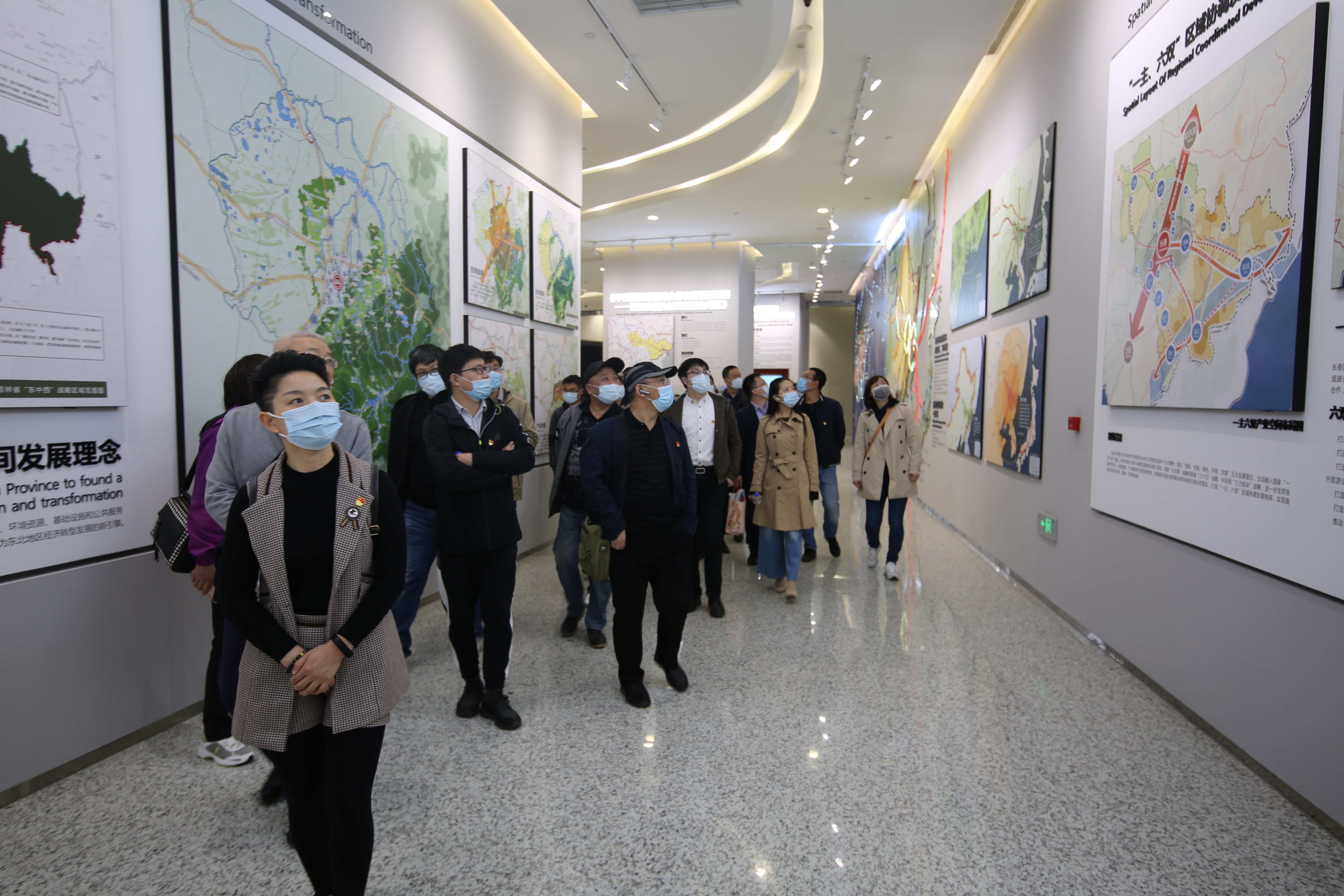 馆内展览空间分三层,分为“长春城市发展的历史”、“城市科学规划”和“长春市未来探索”等三个展区,展示内容主要分品读长春历史、构建东北亚区域性中心城市、推动生态文明建设、探索城市未来四个部分,共22个展区。通过现代化的科技展示和讲解员精彩生动的讲解,公司师生了解了长春从1800年到解放前的规划建设内容、产业发展情况和地域文化成果,观看了磅礴大气的城市沙盘影片,参观了“一带一路”国家战略规划、长春城市总体规划、长吉图开发开放先导区规划、海绵城市规划、伊通河工程规划设计、旧城改造规划,体验了未来高科技的建筑技术、能源技术、生活区规划,提前感受了2080年美好长春的愿景。