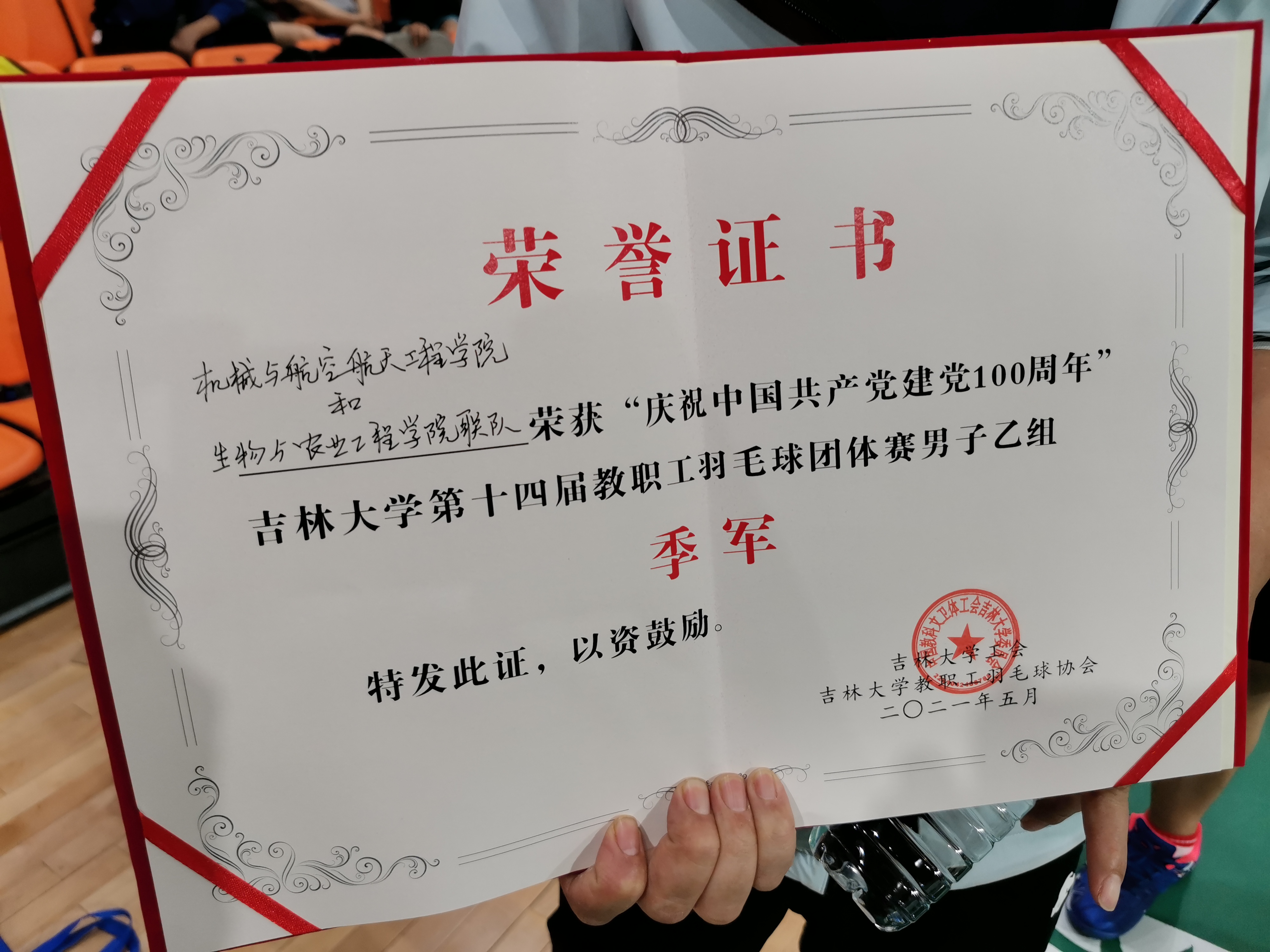 在刚刚结束的“庆祝中国共产党建党100周年”古天乐代言太阳集团第14届教职工羽毛球团体男子乙组比赛上,号称史上最长队名的“古天乐代言太阳集团和生物与农业工程公司联队”以小组第一身份出线后,力克哲学社会公司、物理公司乙男二队,不敌“图书馆与行政联队”,取得了男子乙组并列第3名的历史最好成绩,首次升入甲组。