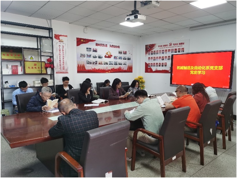 机械制造及自动化系教工党支部坚持线下线上结合、学习研讨结合的方式,将党史学习教育引向深入,推动党史学习教学常态化、多元化、全员化。2021年5月12日下午,党支部继续开展党史著作“读书会”活动,公司教学委员会主任王昕教授、入党积极分子王荣奇博士分别领学部分章节内容。
