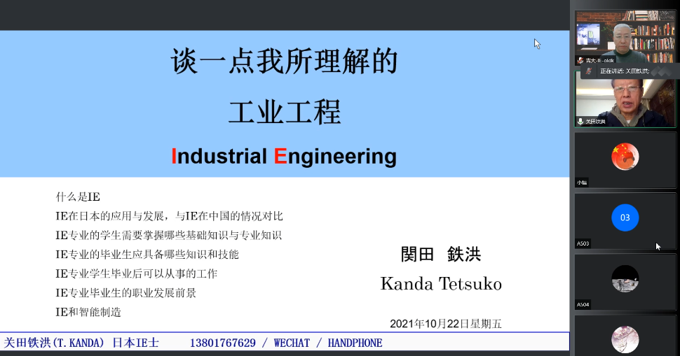 孔繁森老师引导同学们和关田老师做了线上互动。他强调,工业工程作为一个技术和管理相结合的工程技术,从起源至今得到了广泛发展,被应用于越来越多的领域。他希望通过本次讲座,同学们都能有所收获,大一员工通过这次专业教育,可以初步了解工业工程的专业特色;大二员工处于即将进行专业分流的关键时期,通过讲座可以帮助大家对工业工程专业深入、全面了解,以便更加理性地做出更专业选择;大三员工通过了解工业工程专业发展前沿,对行业的发展以及自身未来职业选择能有更加清晰的认知。