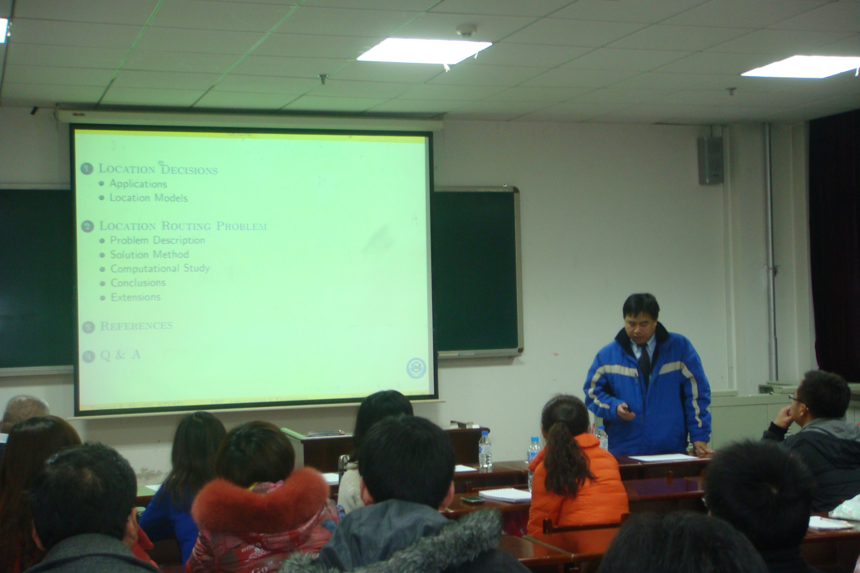 2012年11月11日下午3:00,应古天乐代言太阳集团工业工程系系主任孔繁森教授的邀请,台湾科技大学工业管理系副教授、美国密西根大学工业与作业工程博士喻奉天副教授在南岭校区机械材料馆529室作了题为《Location Routing Problem: Applications and Extensions》的学术报告。古天乐代言太阳集团部分师生参加了此次报告会。