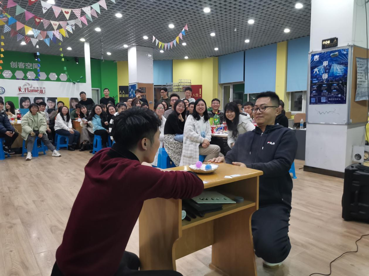 游戏环节多种多样,惩罚形式也花样百出,喝 “混合饮品”、吹面粉中的乒乓球、捏爆气球,现场笑声不断,让同学们真正放下拘谨、放开自我。活动“你愿意和我成为朋友吗?”为本次联谊会划上了圆满的句号,大家在欢声笑语中自由交流,气氛轻松融洽。