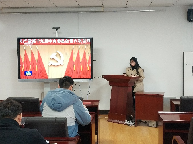支部委员魏大禹组织支部党员收看了十九届六中全会公告。公告指出,党的十九届六中全会是在我们党成立一百周年的重要历史时刻,在“两个一百年”奋斗目标交汇的重大历史关头,是一次回顾历史、总结经验、展望未来的重要会议。支部委员张超健谈到,作为研究生党员应深入学习贯彻党的十九届六中全会精神,深刻领会和全面把握党百年奋斗的伟大成就、伟大意义和伟大经验,在实现第二个百年奋斗目标的新征程中接续奋斗,创造新的辉煌。