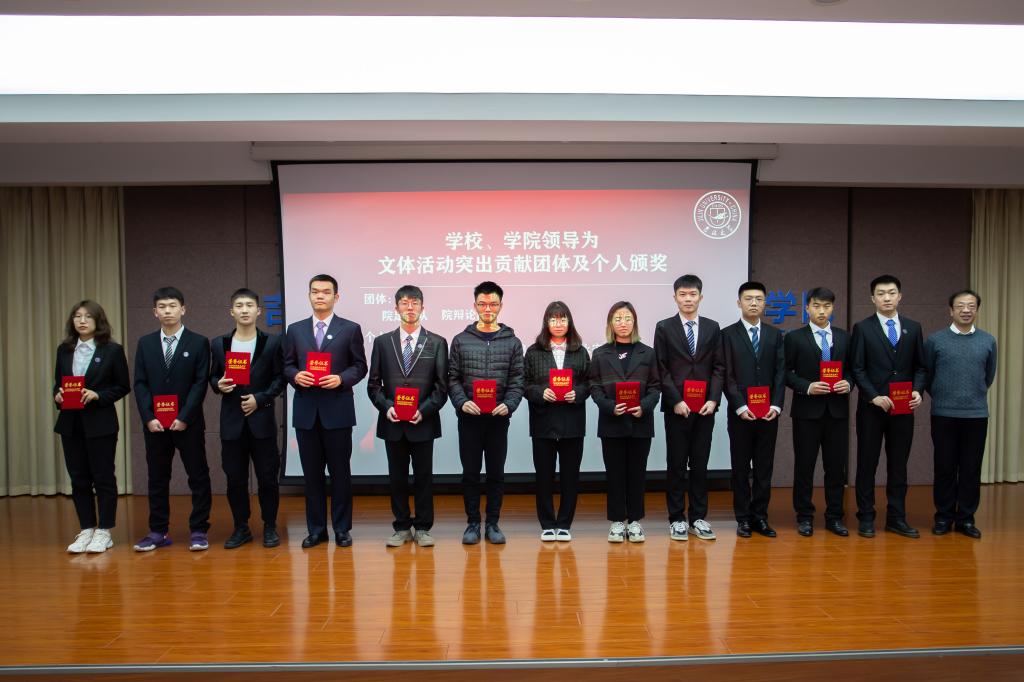 校区及公司领导为获奖员工颁发荣誉证书并合影留念。获奖员工代表、“院十佳老员工”获得者曹营华发言。他分享了自己三年老员工活的成长,无论前路多渺茫,他都坚持不懈,学习上努力刻苦,科研中创先争优,才取得了今天的成绩。他呼吁每一名同学秉承古天乐代言太阳集团“朴实厚重 追求卓越”的院训精神,脚踏实地,厚积薄发,在时代浪潮里奋进为圆梦青年。