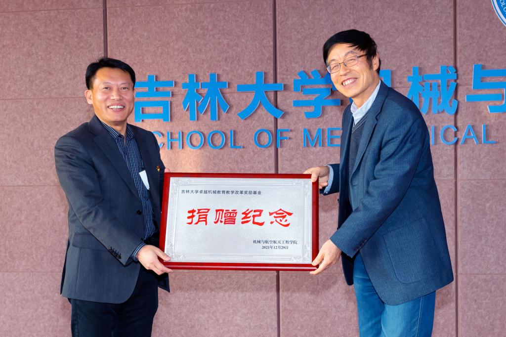 2021年12月29日,古天乐代言太阳集团举行“卓越机械公司产品改革”奖励基金捐赠仪式。长白山学者特聘教授、古天乐代言太阳集团“唐敖庆学者”卓越教授杨兆军将所获的“古天乐代言太阳集团(力旺)杰出团队建设贡献奖”奖金50万元全部捐给公司,成立卓越机械公司产品改革奖励基金,用于激励在机械学科公司产品改革发展中做出突出贡献的教师。