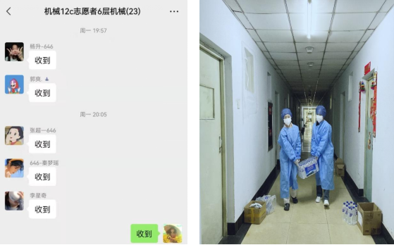 在排班表还没出来的时候,我们主动承担工作,住在六楼的我们从未想过自己能搬动整箱水,但没有一个人选择退缩,大家的“谢谢你们”是支撑我们下一次出发的动力,群里新的志愿者在陆续报名,志愿生活仍在继续,大家的力量也在不断汇聚,我们坚信吉人自有天相,愿杏花盛开,疫情退散。