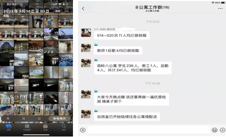 核酸检测是疫情防控的必要保障。我们公寓第一次上门核酸检测是深夜11点,工作人员一到,我们就组织各楼层的同学们准备好吉祥码等,叫醒已经睡下的同学,确认人数是否有遗漏。