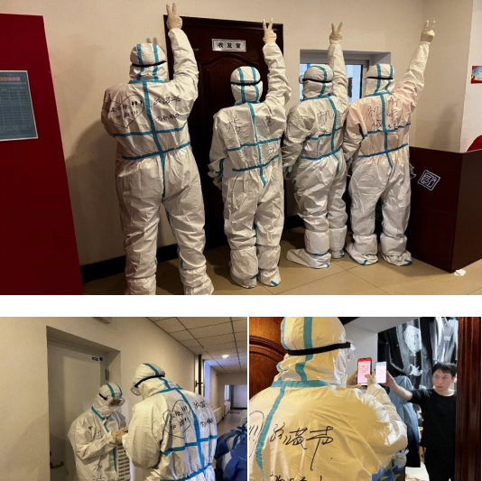 书生有担当,在这物资匮乏、缺少人员的时期,我加入到志愿者的队伍当中,为公司抗击疫情添砖加瓦,贡献自己的力量。戴上口罩、手套、防护帽,穿上“大白”,戴好护目镜,帮助社区人员进行核酸检测。一个一个寝室地敲门,一遍又一遍地提醒大家准备好吉祥码,大家都十分配合。经过两个小时的忙碌,终于完成了整个楼层的核酸检测,脱下“大白”的时候,身上已经湿透了,才两个小时自己就已经有点吃不消了,而那些一线医护人员一穿就是一整天,心中不由地对他们产生敬意。每个人尽一份力,发一点光,汇聚萤火之光,照耀整个星河,万众一心,冲破枷锁,愿疫情早点过去,国泰民安,一切顺遂,岁月静好,你我安然!