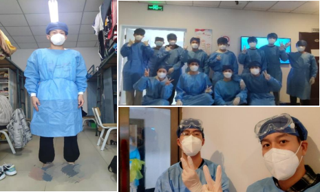 随着疫情的加剧,核酸检测频率也随之增加,医护人员明显人手不够,因此我们摇身一变,变成了大家熟悉的“大白”,几个充了气捂得严严实实的大白每天下午活跃在4公寓。“大白”确实不是那么好穿的,闷热先不说,只要一说话,防护眼镜里就起雾了。但比起外来的医护人员,我们只穿两个小时,她们却要穿一整天,实在是很辛苦。当然,检测过程也会有一些小插曲,穿着“大白”站在你认识的人面前,只要不说话,他就不会认出你来,真是难得的一段记忆。