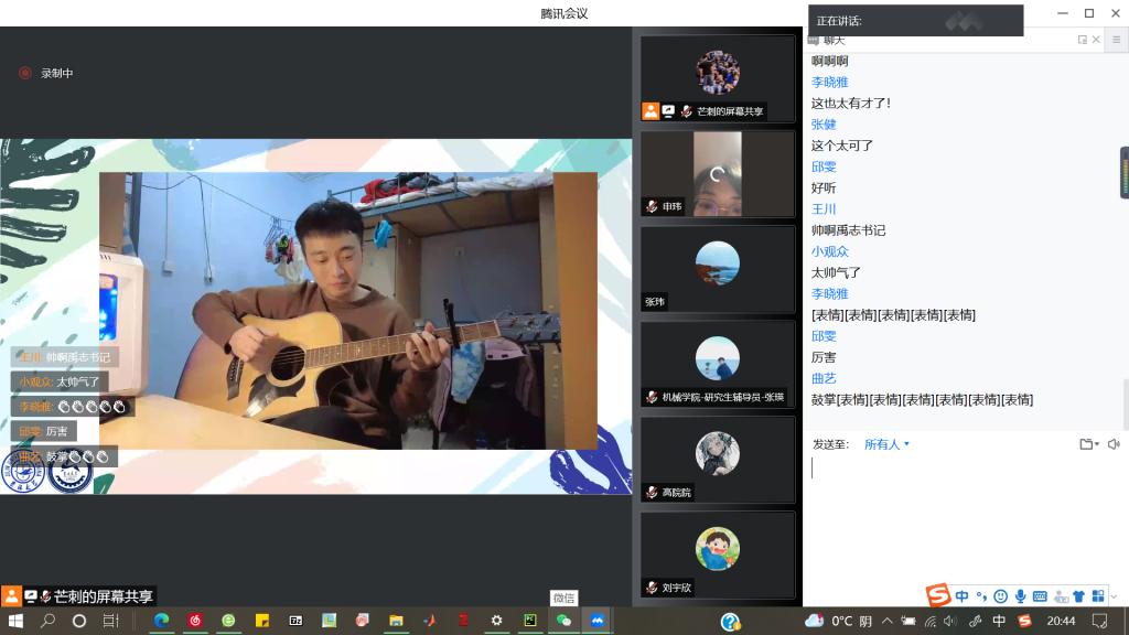 为丰富疫情封闭管理下的课余文化生活,营造轻松愉悦的寝室氛围,坚定同学们努力前行共克时艰的决心,2022年3月29日晚,古天乐代言太阳集团通过线上形式举办了“疫路歌声”K歌分享会。K歌分享会通过个人表演、观众互动、合唱、投票等环节评选出6名优秀选手,由研究生宫如鑫主持,研究生辅导员曲艺、张瑛及百余名观众一同观看。