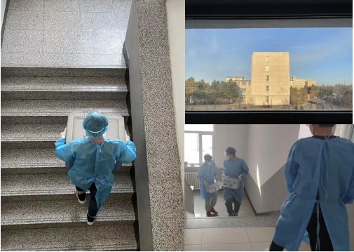 辅导员老师对任务进行了初次布置,从值班任务、时间到区域分配,井井有条,在时间和精神各个方面都为我们员工做足了考虑。还记得我的第一天志愿者上岗,虽然是早上七点集合,但是每一个志愿者都有十足的精气神,即便是隔着护目镜,我也能感受到每一位同学坚毅的目光。每一天只要一听到门外送物资的车的声音,我们便整装待发,每一个人都有决心打赢这场抗疫大战!