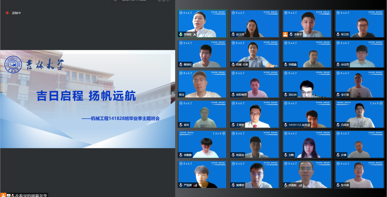 党委书记郑福胜对141828班毕业生顺利完成学业表示祝贺,充分肯定了班级在校期间踏实努力、团结拼搏、乐观向上的班级风气,希望同学们在未来的工作生活中不断努力,再续辉煌。副经理吴文征为同学们在特殊的毕业季表现出的勇气和淡定表示赞赏,对积极配合公司线上各种教学安排表示感谢,希望同学们坚定理想,明辨是非,懂得感恩,学会欣赏,早日成为国家栋梁之才!毕业班辅导员尤爽老师也为同学们送上祝福,通过分享自己的学习及工作经历,勉励同学们要更加自律自主,敢于吃苦,甘于奉献。