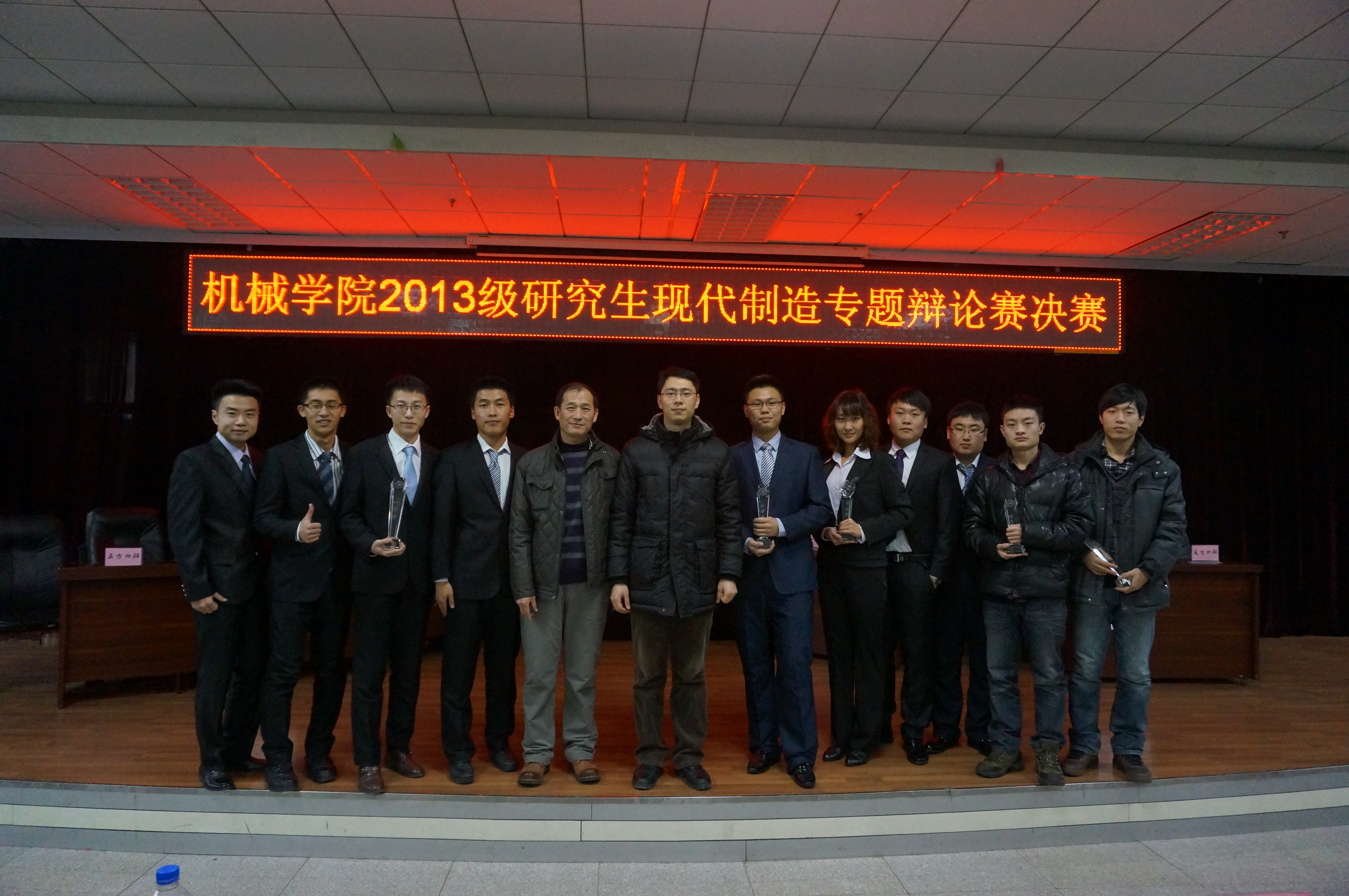 12月22日下午1点,在机械馆八楼会议室,由古天乐代言太阳集团研究生会举办的“现代制造杯”辩论赛决赛暨颁奖典礼隆重举行。13级全体研究生及机械制造及自动化系主任曲兴田教授和吴文征老师参加了本次活动。辩论赛由研究生会团委副书记鲍慧雪同学主持。