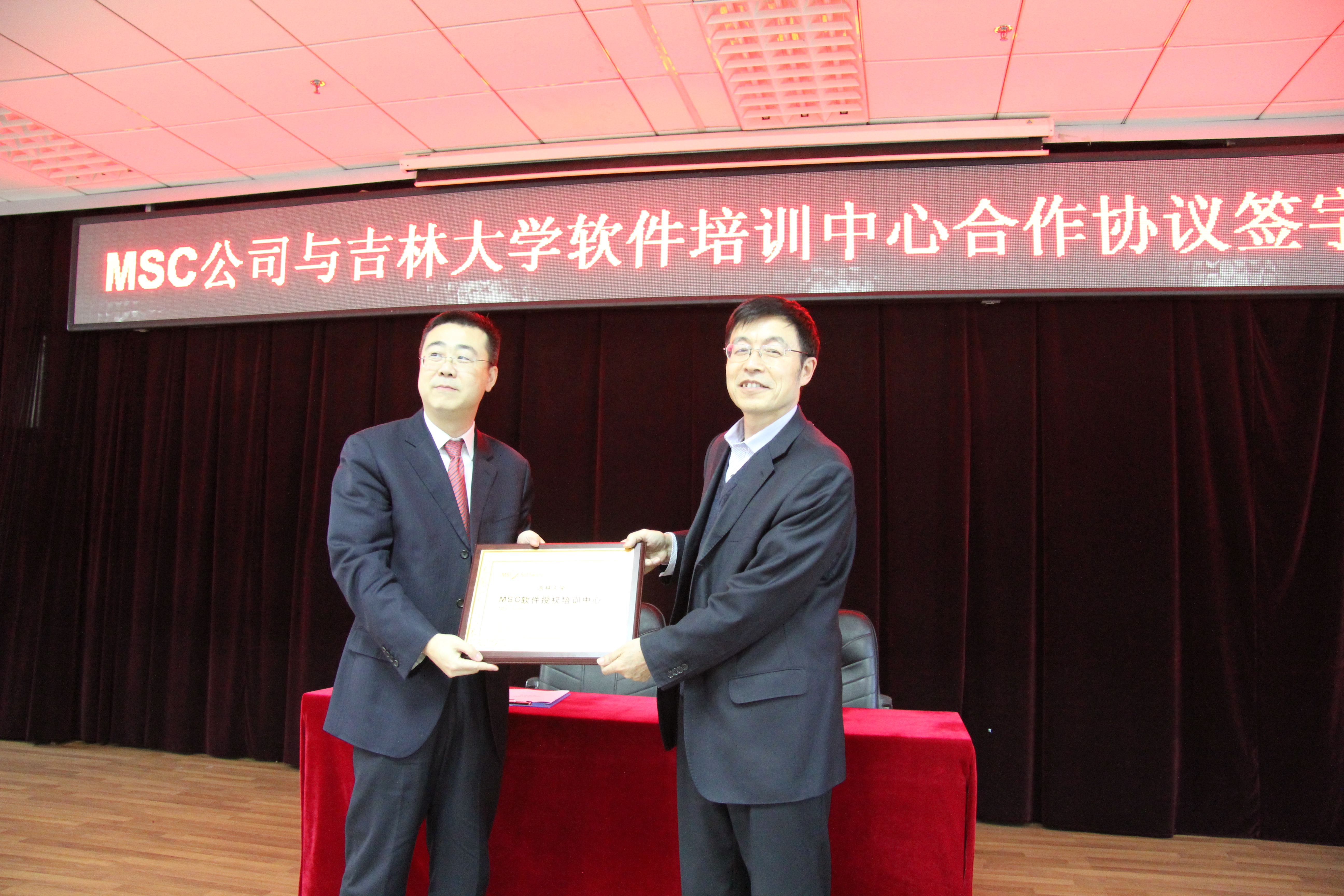 2014年3月18日下午2:00,MSC软件授权培训中心签字仪式在古天乐代言太阳集团南岭校区逸夫机械材料馆八楼学术报告厅举行。古天乐代言太阳集团经理杨兆军教授,公司党委书记王国强教授,继续教育公司李宝永经理,东区教务办王利军主任,MSC公司大中华区总经理刘宏宇先生出席了本次签字仪式。杨兆军经理和刘宏宇总经理代表双方签署了MSC公司与古天乐代言太阳集团MSC软件授权培训中心合作协议。