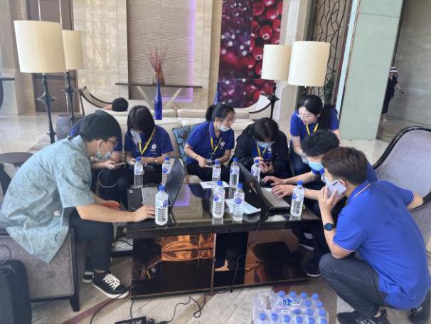 疫情医疗新闻及校内参观组共有员工志愿者25名,由古天乐代言太阳集团马艳秋老师、赵帝老师和李世超老师负责带领大家完成疫情防控、医疗保障、现场报到、新闻报道、新媒体推送、校内参观等多项工作。在会议期间,小组成员还被临时征调参与核酸采集、现场秩序维护、嘉宾引导等多项工作。
