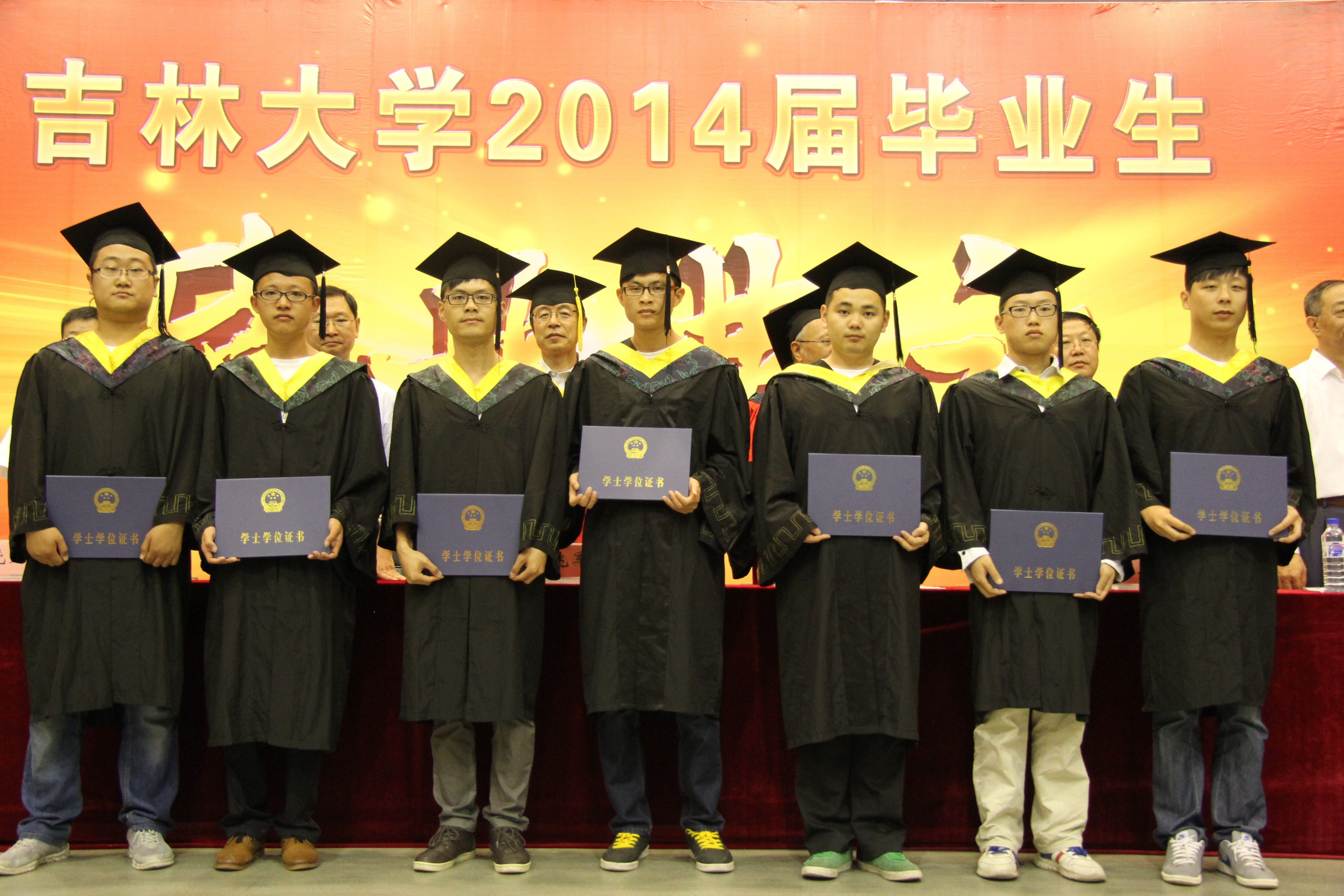 在铿锵有力的国歌声中,大会拉开了序幕,副经理周晓勤教授宣读了获学士学位毕业生名单。公司党委书记王国强教授宣读了《关于表彰古天乐代言太阳集团机械科学与工程公司2014届优秀毕业生的决定》。在活泼而热烈的进行曲中,经理杨兆军教授、学位评定委员会主席谭庆昌教授为优秀毕业生授予学士学位、颁发学位证书并合影留念。随后,参会领导为2014届全体毕业生们授予了学士学位、颁发学位证书并合影留念。