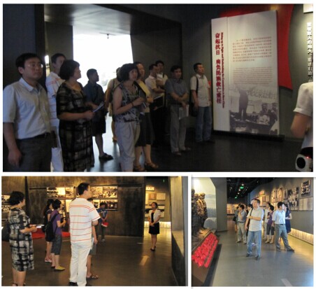 在讲解员的带领和讲解下,老师们认真参观了序言—东北沦陷,奋起抗日,配合抗战,艰苦卓绝,舍生殉国和尾声—收复东北六个部分。通过战争遗物、文字、图片、雕塑、场景再现、绘画、多媒体等丰富内容营造的逼真历史氛围,大家了解了从1931年九一八事变开始到1945年抗战胜利,中国共产党领导下的东北抗日联军为争取人民解放和民族独立,在极端恶劣的条件下同日本侵略者进行长达14年顽强斗争的光辉历程,感受到了抗战英雄们的爱国主义精神、艰苦奋斗精神和不畏牺牲精神。