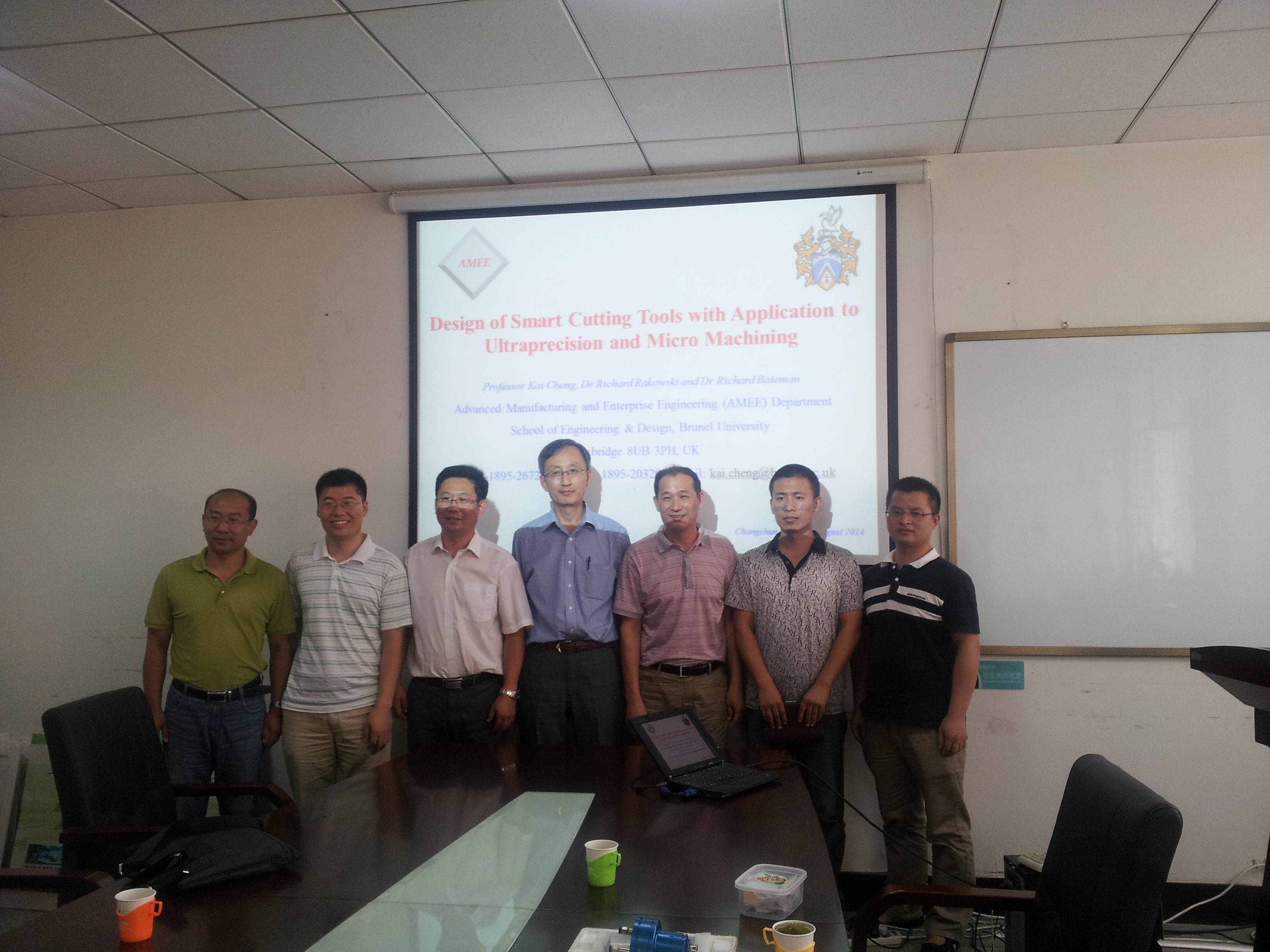 Cheng教授从目前研究的热点、难点出发分析了超精密加工的前沿问题,并分别在超精密加工关键零部件研究(智能刀具研发、电主轴研发、控制系统开发等方面)、整机研究开发和仿生微纳表面超精密加工三个方面作了详细介绍。在现场,Cheng教授还为在座师生带来了他们课题组做的微纳智能金刚石刀具和微纳结构表面零件供大家观看。