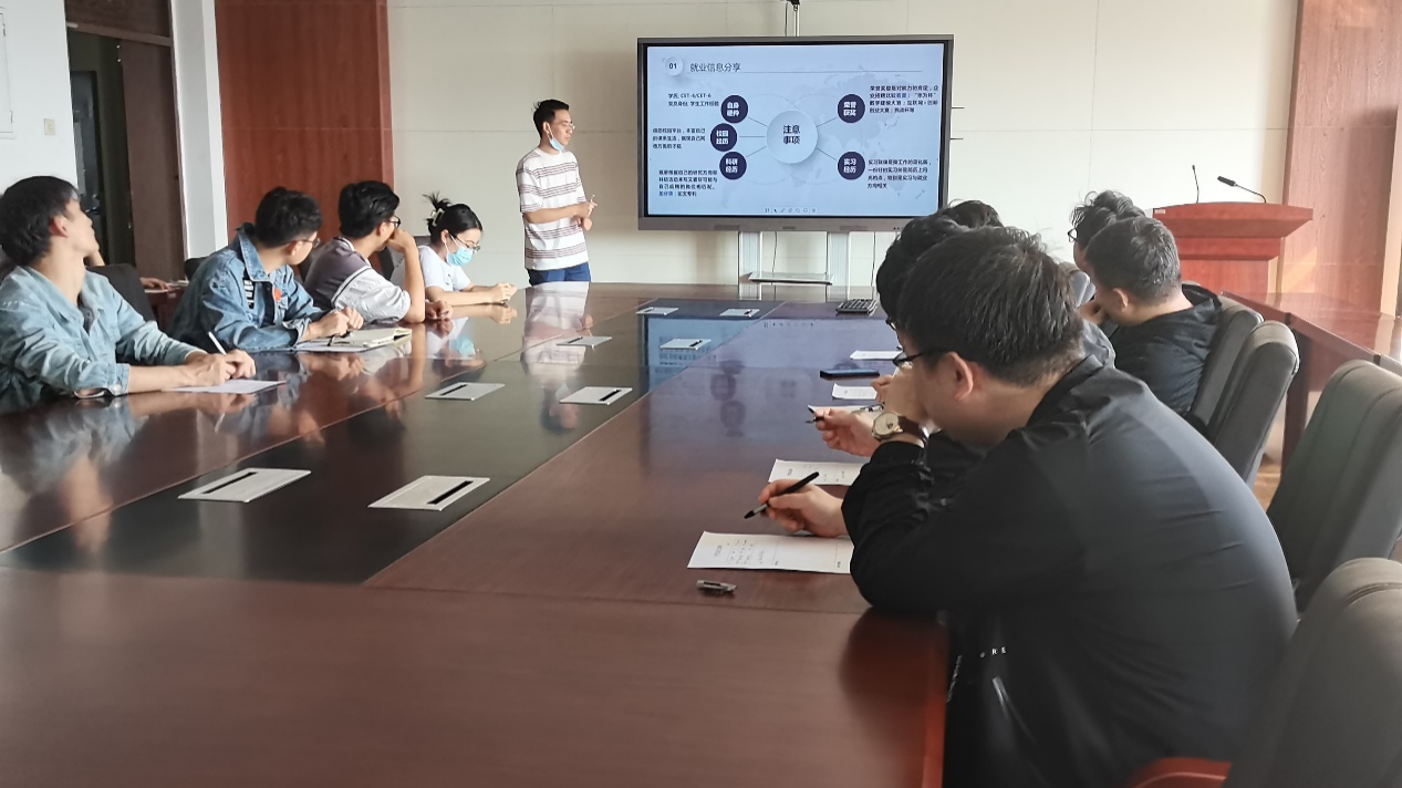 为帮助公司毕业学年研究生做好职业规划,提高毕业生就业质量,掌握毕业年级员工就业动态,9月30日上午8:30,机械航空航天工程公司研究生工作办公室组织开展的“勇往‘职’前”就业信息分享会系列活动第一期在机械馆529召开。