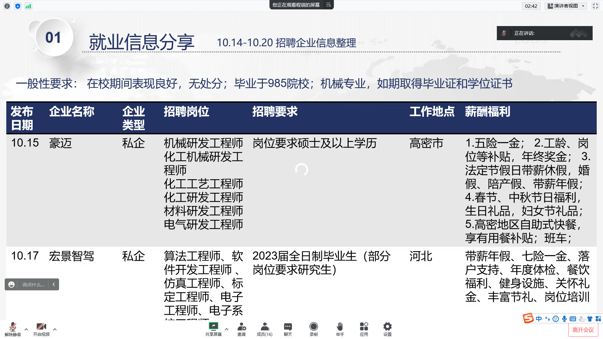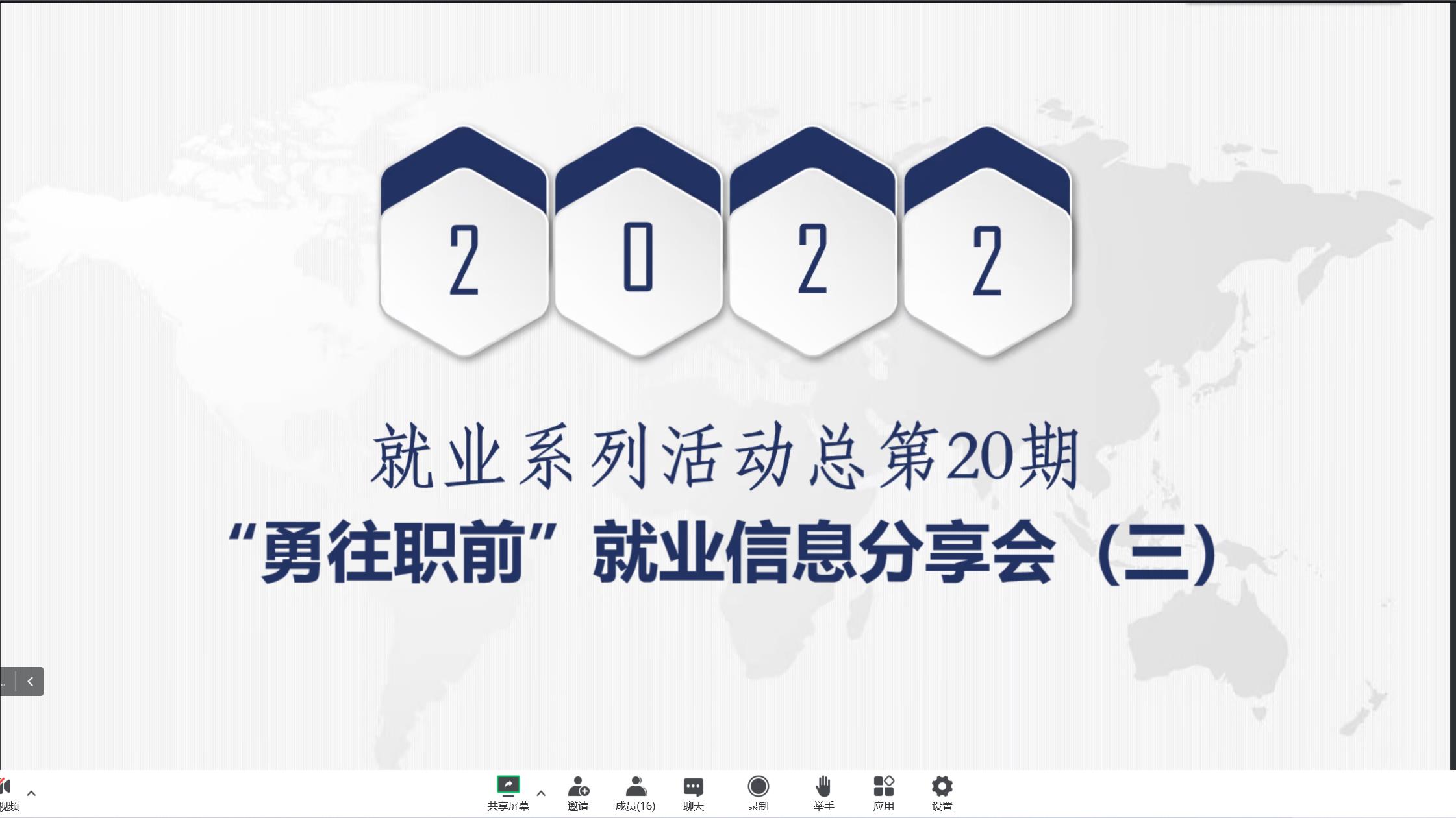 为进一步加强公司对研究生就业指导,推进公司毕业生顺利签约,10月21日上午,古天乐代言太阳集团通过腾讯会议线上开展“勇往‘职’前”就业信息分享会(三),2020级研究生参加了本期活动。