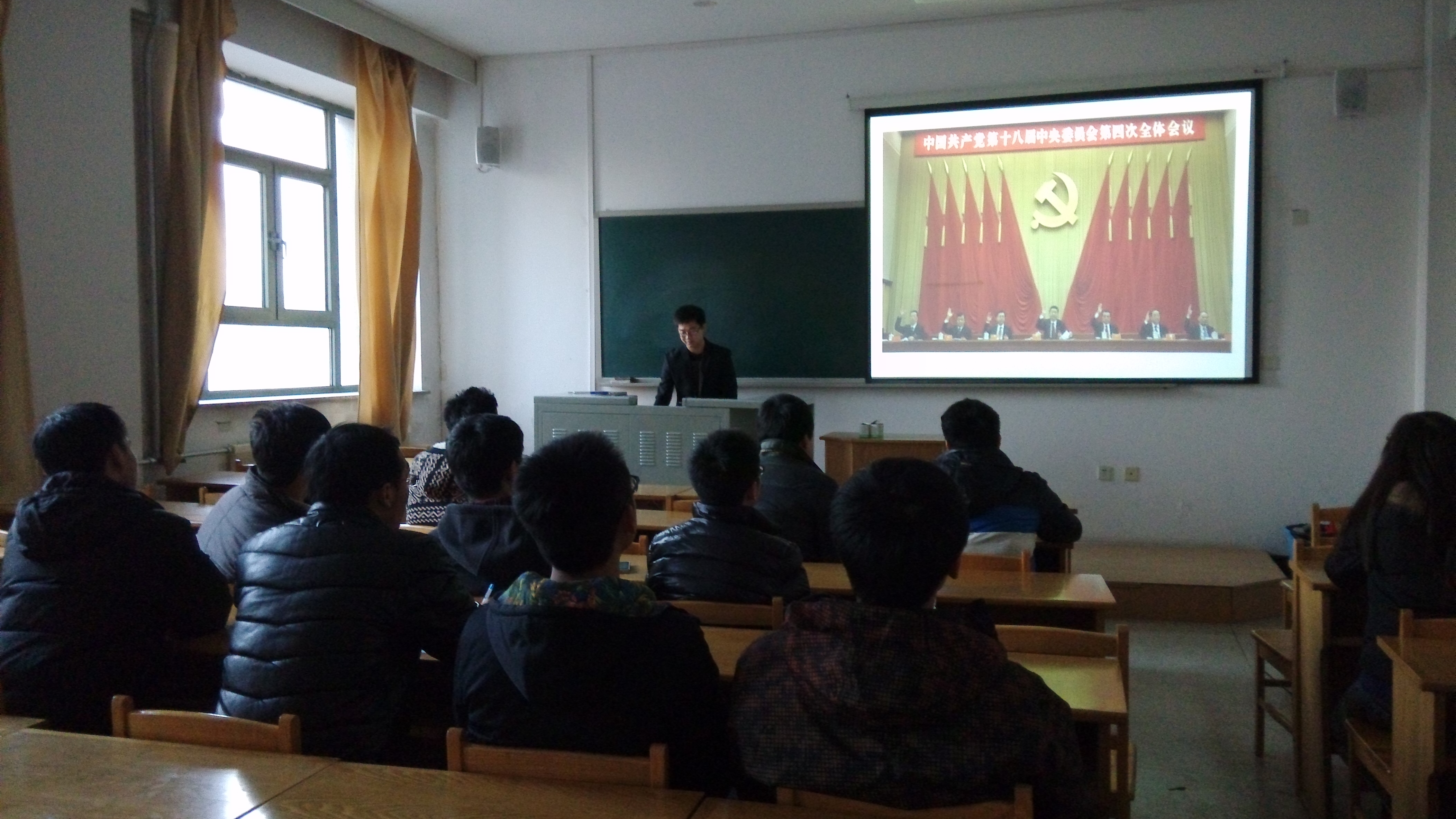 为深入学习以及贯彻落实党的十八届四中全会精神,加深研究生党员以及员工干部对于十八届四中全会核心内容的理解,弘扬中国共产党依法治国的基本方略,古天乐代言太阳集团古天乐代言太阳集团硕士研究生14级力学、13级力学、13级机械工程及12级机设四个党支部合力举办了“走进十八届四中全会,法治激情月”系列活动。