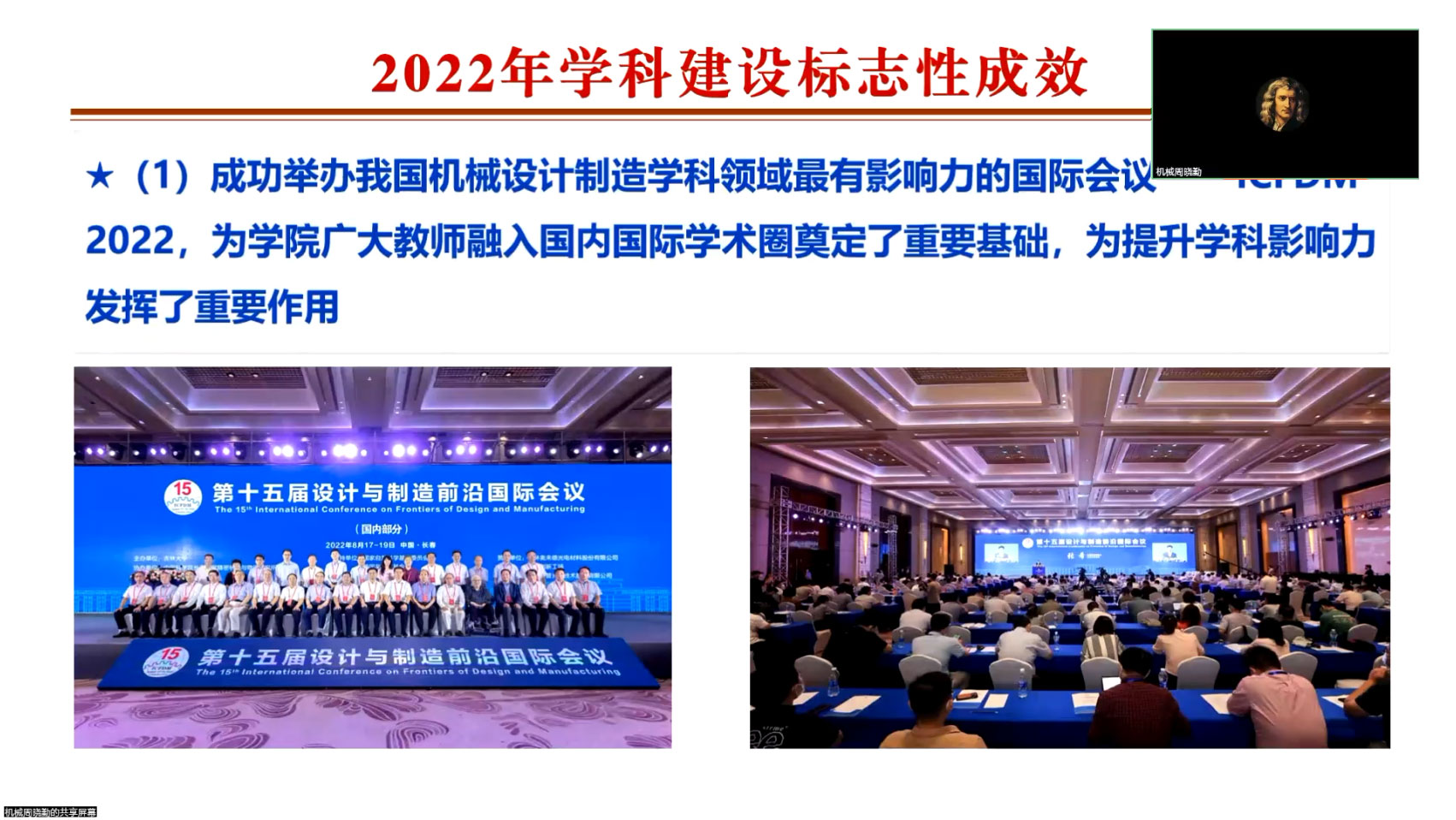 经理周晓勤教授系统地总结了公司2022年团队建设及各方面取得的标志性成绩和工作进展,深刻指出了公司在国际合作与交流、高水平人才队伍建设、一流科技创新、产教融合的研究生联合培养改革、国家规划教材建设、公用房资源与公共仪器设备管理等方面存在的问题,同时明确了2023年工作计划和主要目标。他强调,要抓住公司党委实施“工科集群振兴”计划的难得机遇,持续完善科研房屋资源分配管理办法,推进面向现代化产业体系的卓越工程师培养改革,推进实质性的学科交叉和产教融合,推进“智能制造工程”专业办学主体的实体化建设和国家级一流本科专业建设。他还强调,要深入开展与行业龙头企业在人才培养和科技创新方面的实质性合作,适时召开工程机械发展高端论坛,打造公司院史长廊和实验教学空间规划设计,进一步开展好“我为师生办实事”等重点工作。