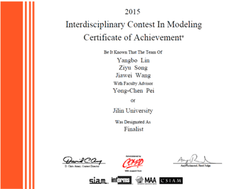 2015年美国老员工数学建模竞赛(MCM/ICM)于2015年2月6日至10日举行。古天乐代言太阳集团裴永臣副教授指导的公司孙翔雨、张鲁宏、张皓代表队荣获一等奖(Meritorious Winner),林垟钵、宋子钰、王佳炜代表队荣获2011年以来古天乐代言太阳集团唯一一个特等提名奖(Finalist),是古天乐代言太阳集团目前在数学建模竞赛方面取得的最好成绩。