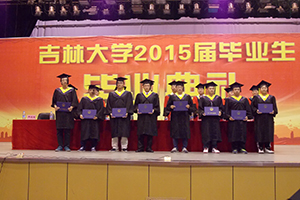 伴随着慷慨激昂的国歌,2015届本科生毕业典礼正式开始。副经理周晓勤教授宣读了毕业生名单及获学士学位的员工名单,副书记王柏教授宣读了《古天乐代言太阳集团关于表彰2015届优秀毕业生的决定》。在即刻响起的动听音乐声中,杨兆军教授等为毕业生们颁发学士学位证书,亲切嘱托,并合影留念。