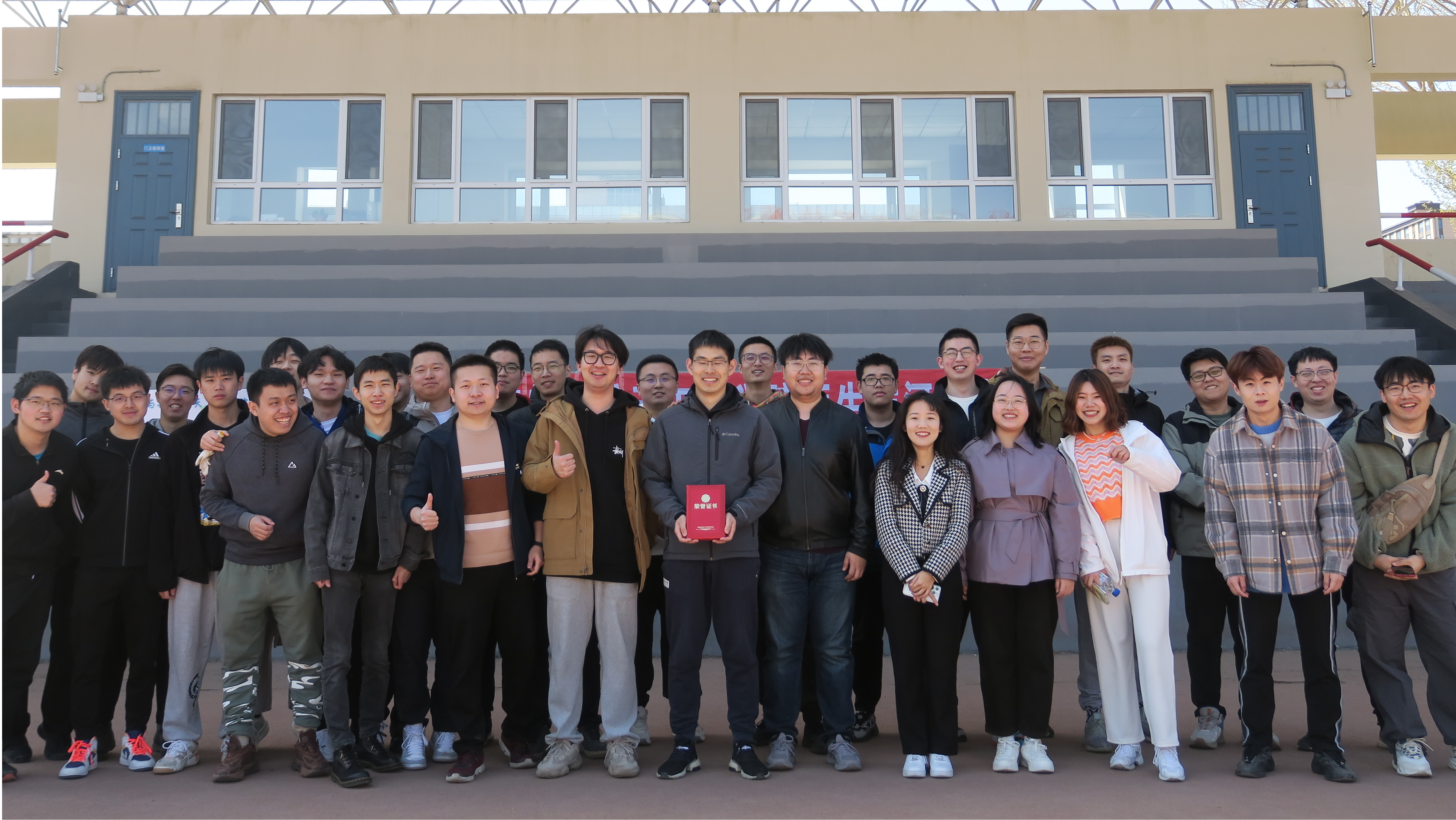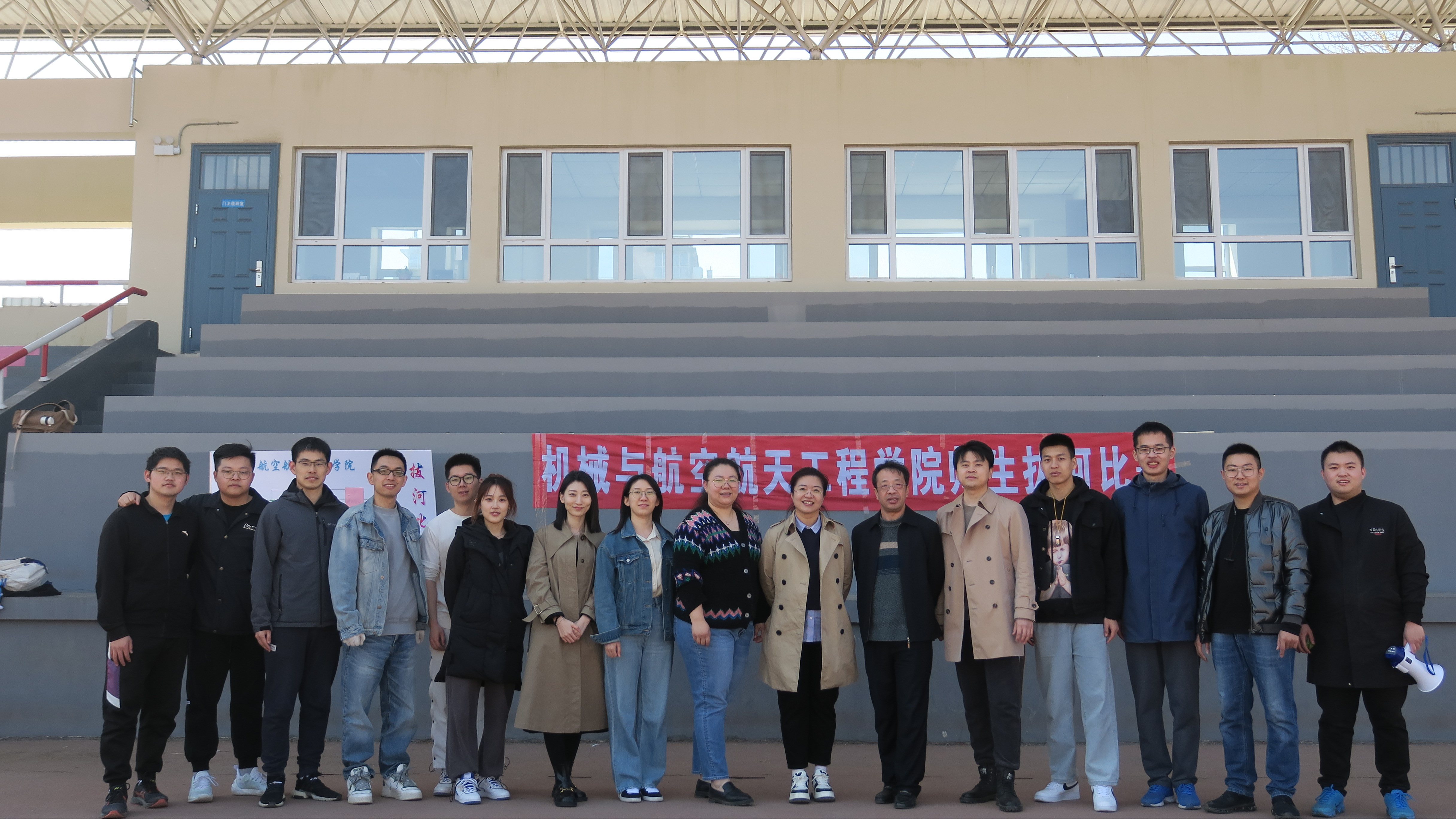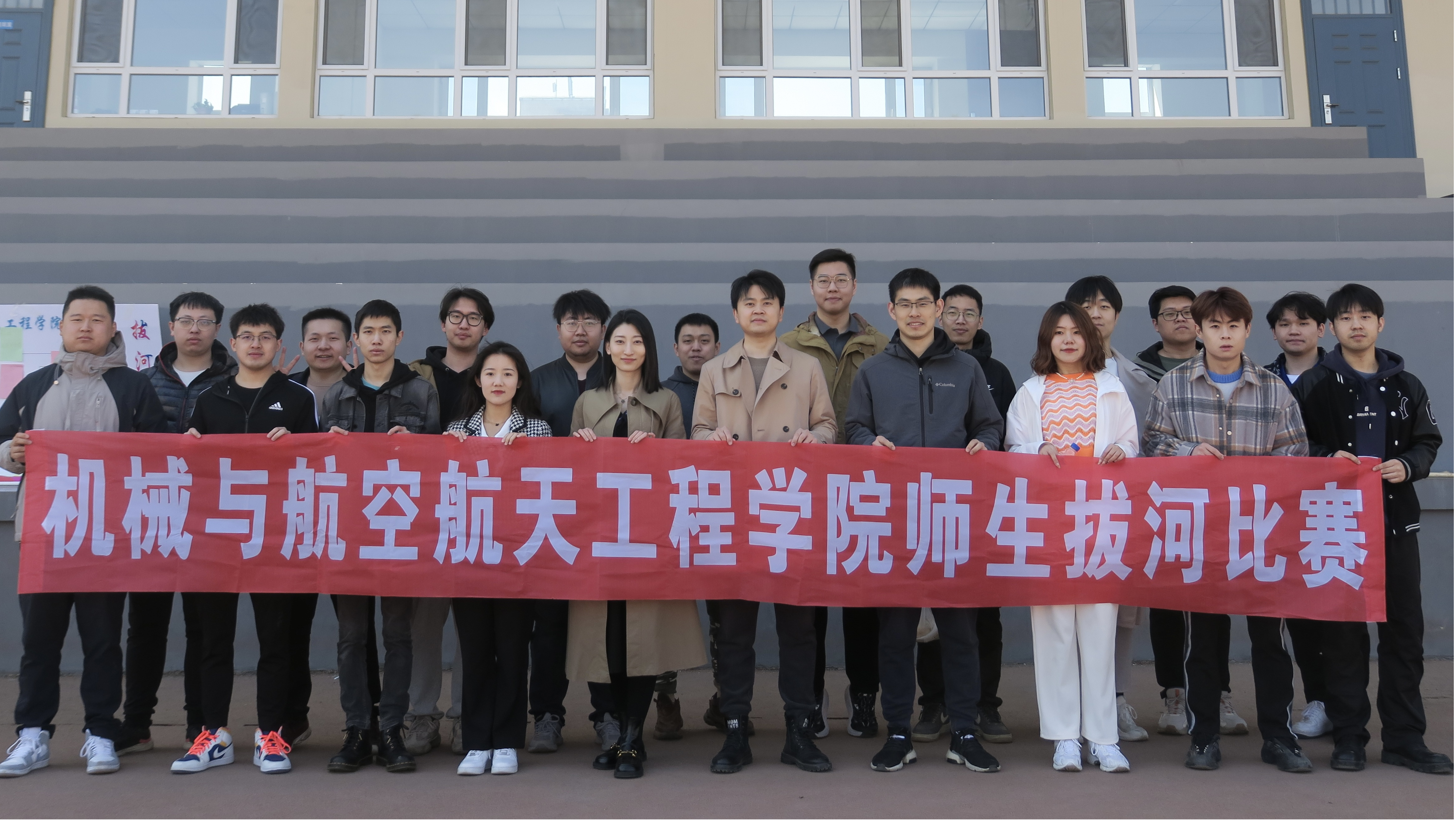 各参赛队伍商讨对战策略,互相加油打气,队员们稳扎马步,摆好阵势,个个精神饱满,斗志昂扬。伴随着哨声响起,比赛一触即发,双方队伍就像脱缰的野马,迸发出全身力量。场上队员握紧绳子,目光坚毅,一个个重心下移,凝神聚气,为自己的队伍拼尽全力。场下观众齐声高呼自己课题组队伍的口号,加油声此起彼伏,“一二一二”的呐喊声响彻南岭体育场,气势十分壮观。经过激烈的角逐,赵宏伟教授课题组(队名:美丽大白菜)和周晓勤教授课题组(队名:众所周知)从7支队伍中脱颖而出,进军决赛。决赛中双方势均力敌,红色标记在两队之间左右移动,各队队员拼尽全力,挑战着耐力和体力的极限,最终赵宏伟教授课题组更胜一筹,获得本届拔河比赛冠军。