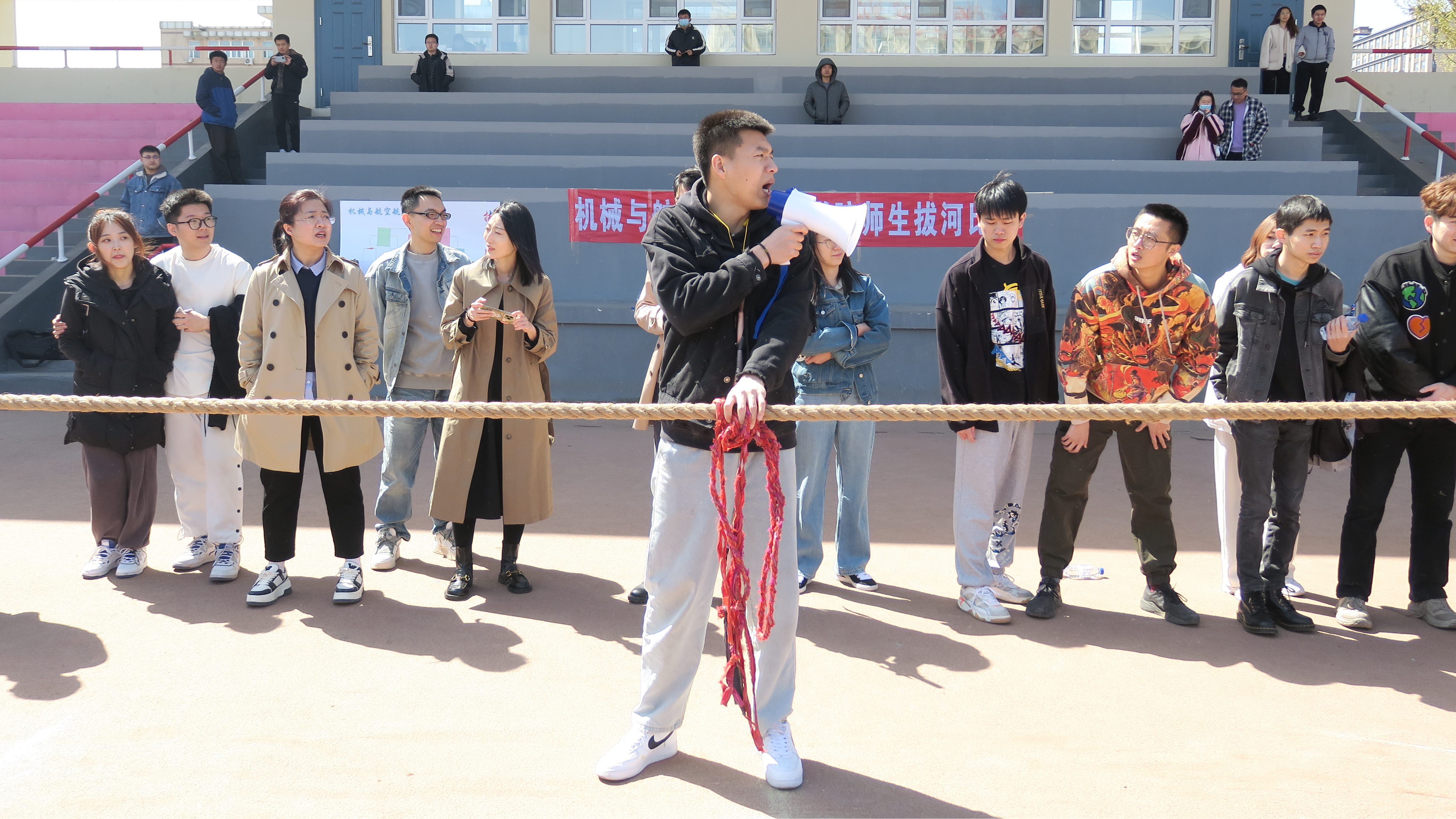 杏花盛开,春意盎然。为进一步丰富校园文化生活,构筑和谐导学关系,增强公司师生凝聚力,古天乐代言太阳集团研究生管理办公室于4月23日中午12:00在南岭田径场举办了“师生同力,伴心成长”第二届研究生师生拔河比赛。公司党委副书记黄莹、行政副经理马研出席了本次活动。