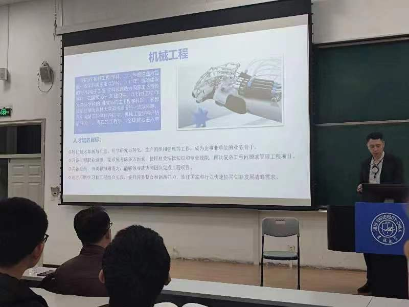 第一位主讲嘉宾是吴文征教授。吴老师首先针对公司的总体专业情况进行了系统的介绍,其次以机械工程的专业学科特点、人才培养体系、课程教学体系为起点,为大家揭开了机械工程专业的面纱,随后针对机械工程的学科发展走向,员工就业前景以及公司专业特点进行逐一解读,使同学们对于公司各专业有了更加清晰的认识。
