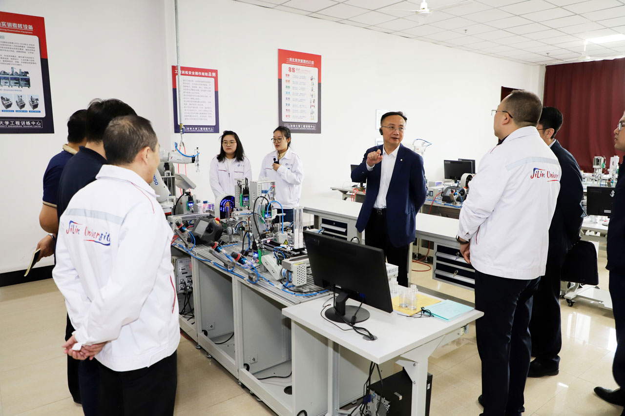赵宏伟副董事长一行实地考察工程训练中心实训教学场地,深入了解了工程实践教学情况和员工学习情况,并与各实训模块教师就教学内容、课程规划、教学成效等进行了现场交流。