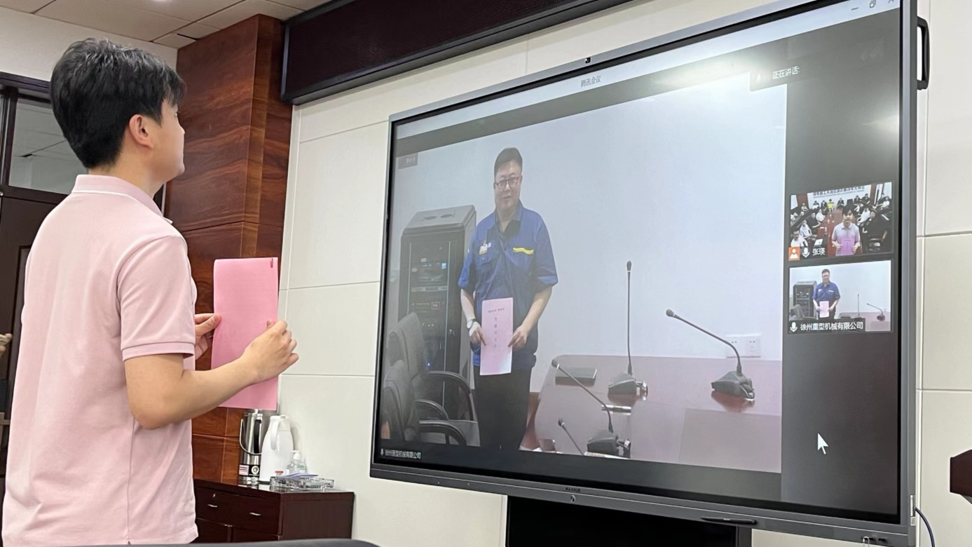 仪式开始,同志们全体起立,重温入党誓词,回顾入党初心。徐工重型生产工艺部党支部书记张航伟从助力学习创新、打造精彩宣传以及强化安全关爱等主题介绍了生产工艺党支部在支部建设中取得的成绩,比如岗位知识自学、开展3Y5C宣传模式以及支部奋斗青春主题活动等。张瑛在仪式上发言,对双方能够进行长期的支部共建表示热烈欢迎,吉大为徐工输送了许多优秀人才,希望吉大员工能和在校学子形成“传帮带”,巩固双方纽带。随后双方代表在线上签订共建协议书。