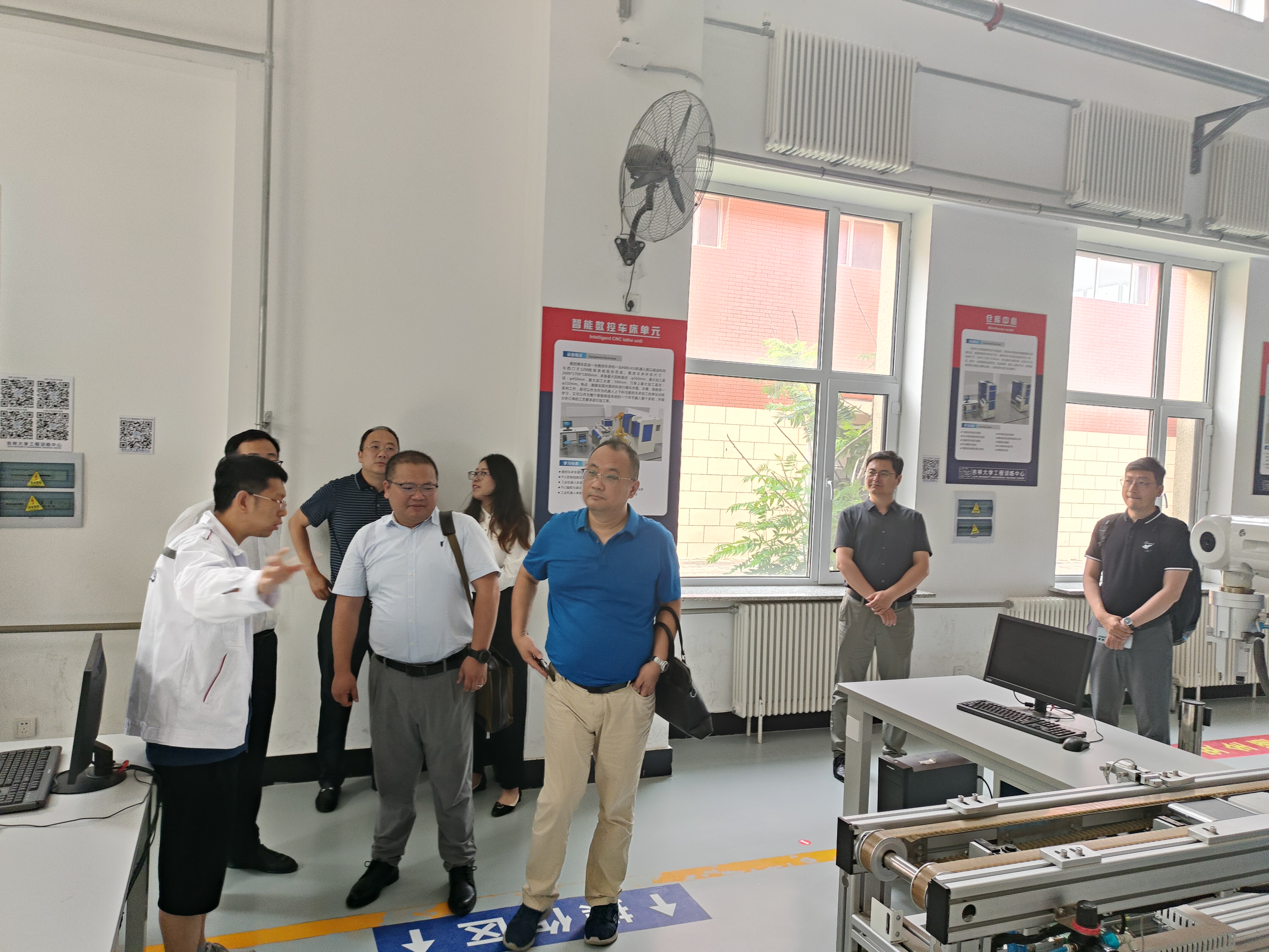 刘鹏代表公司工程训练中心对李鹏一行的到来表示了热烈的欢迎。李鹏一行依次参观调研了共享空间、加工中心、智能制造、激光加工等实训教学场所。