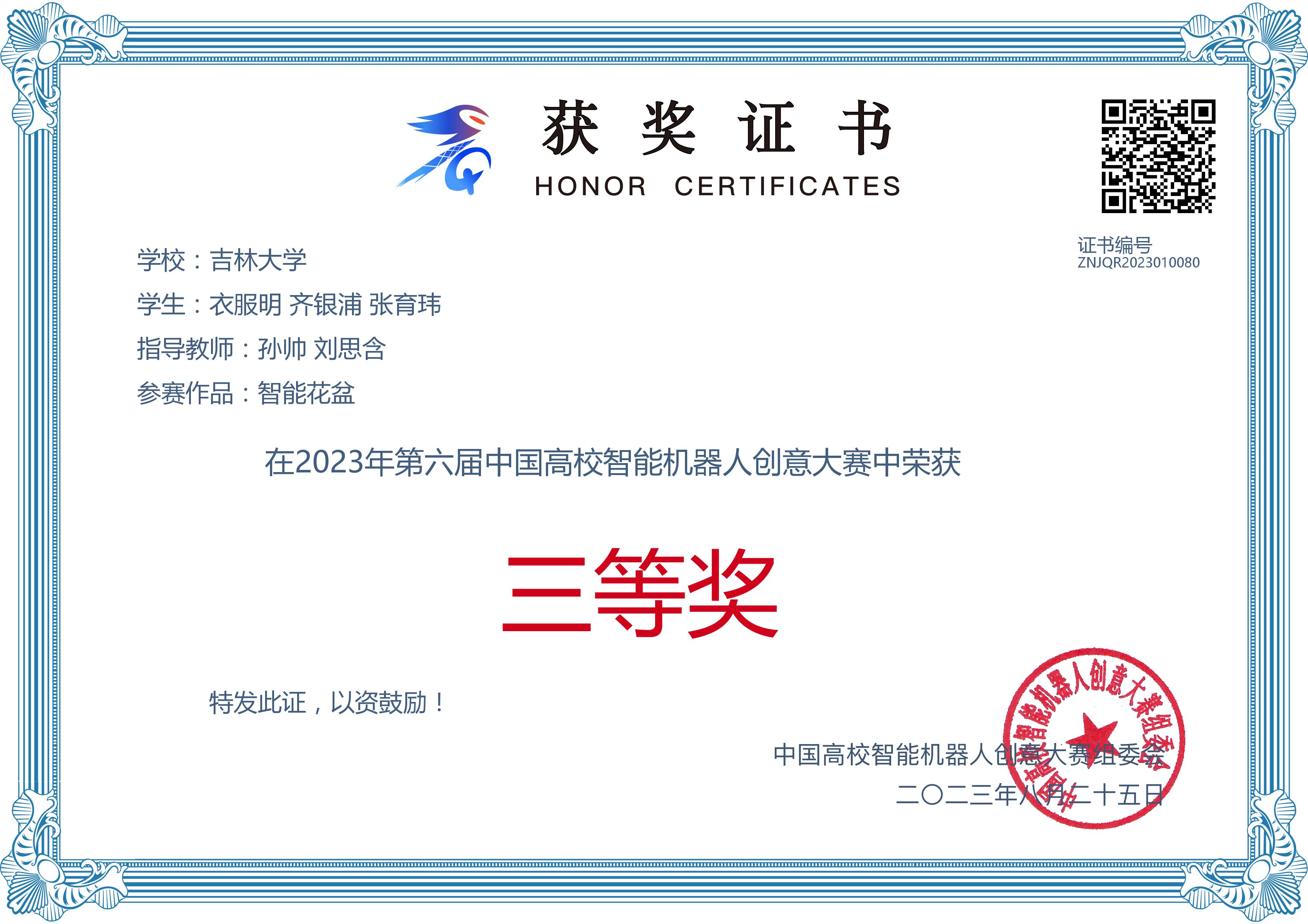 杨芷依、刘耀祖、何乐以“化蝶”——妆造机器人”为题勇夺家用智能机器人无实物组全国二等奖。
