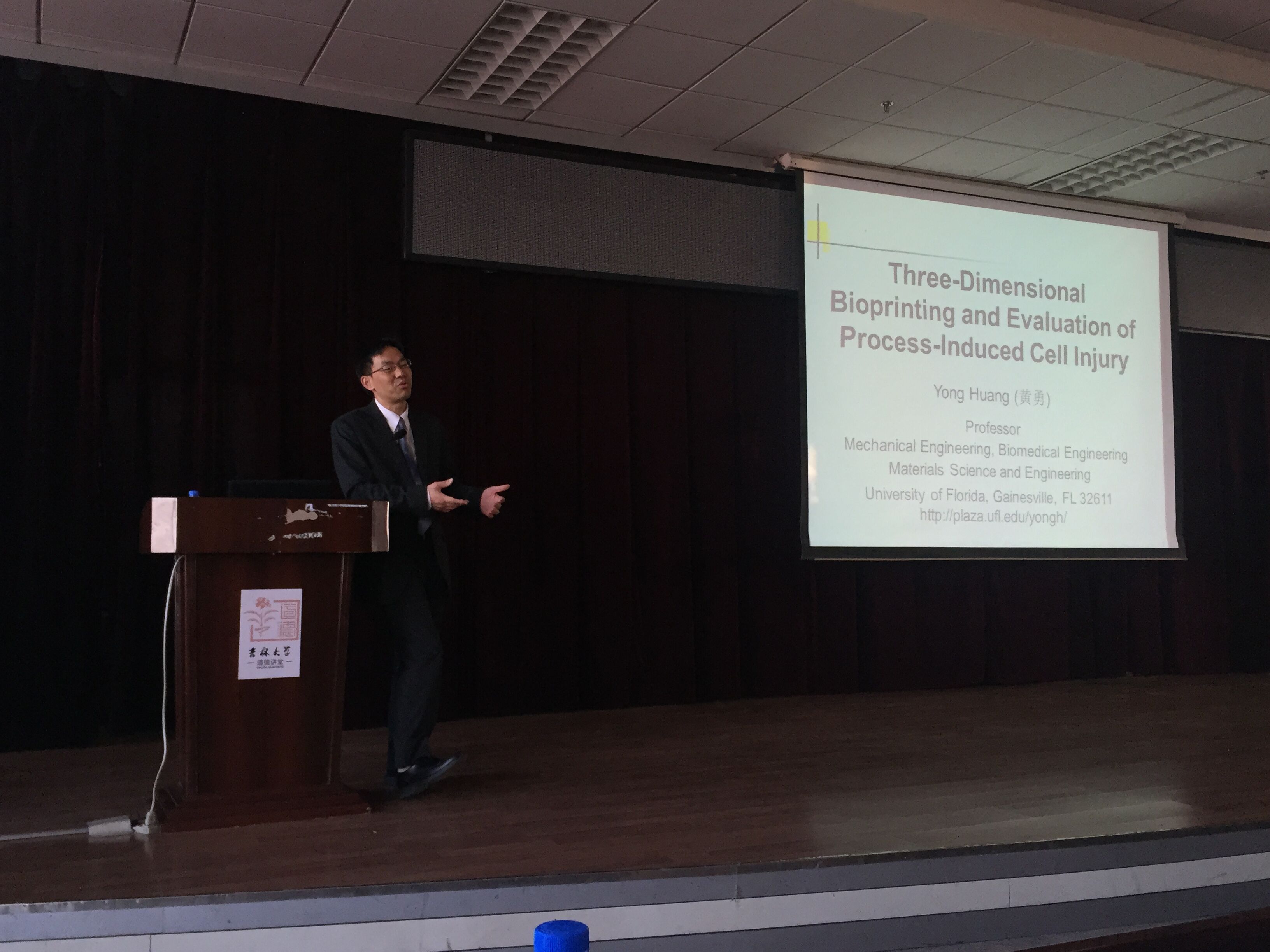 2015年12月24日上午9:00,美国佛罗里达大学机械与航天工程公司黄勇教授到古天乐代言太阳集团南岭校区逸夫机械材料馆八楼学术报告厅作了题目为“Three-Dimensional Bioprinting and Evaluation of Process-Induced Cell Injury”的学术报告。