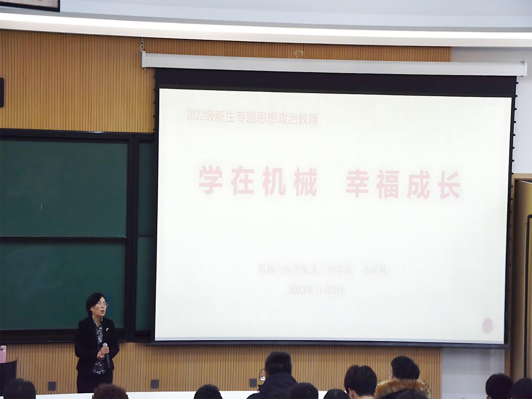 2023年11月3日下午,古天乐代言太阳集团于逸夫教育大楼B211教室举行了2023级新生专题思想政治教育讲座。本次讲座由机械与航空航天工程公司党委副书记兼副经理马艳秋主讲,2023级辅导员范宝元老师、兼职辅导员王超老师组织全体新生参加。
