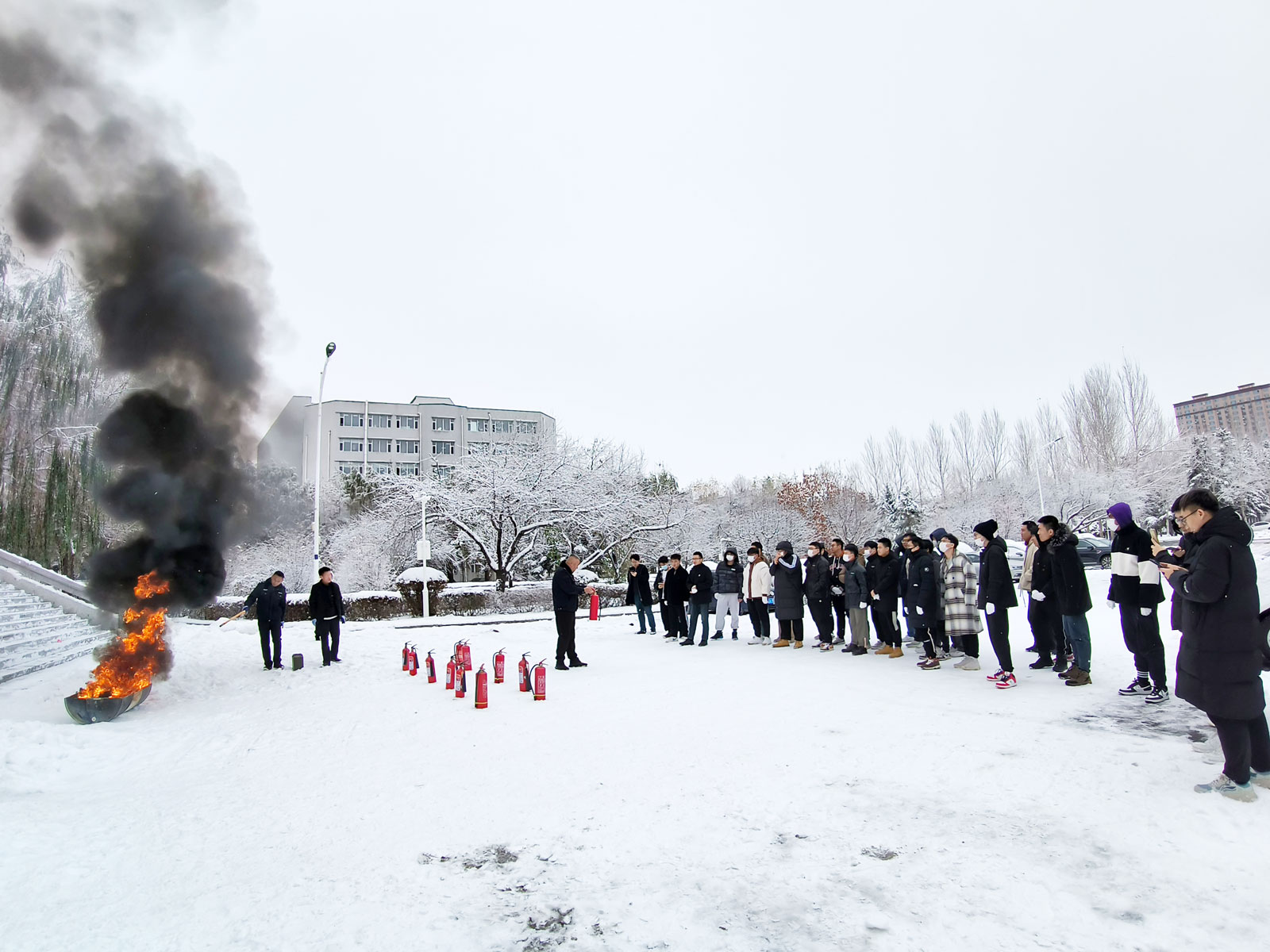 随后,公司副经理马研、左文杰及师生代表参加了消防疏散演练。在东区保卫办刘海江的指导下,在场师生迅速、有序地按照疏散路线撤离至室外安全区域。在室外,王中刚讲解了干粉灭火器的使用方法,并进行了现场演示。现场师生兴趣盎然、踊跃参与灭火实操。演练过程中,王中刚老师还针对同学们距离火源过近、未指向火焰根部等问题进行了指导。
