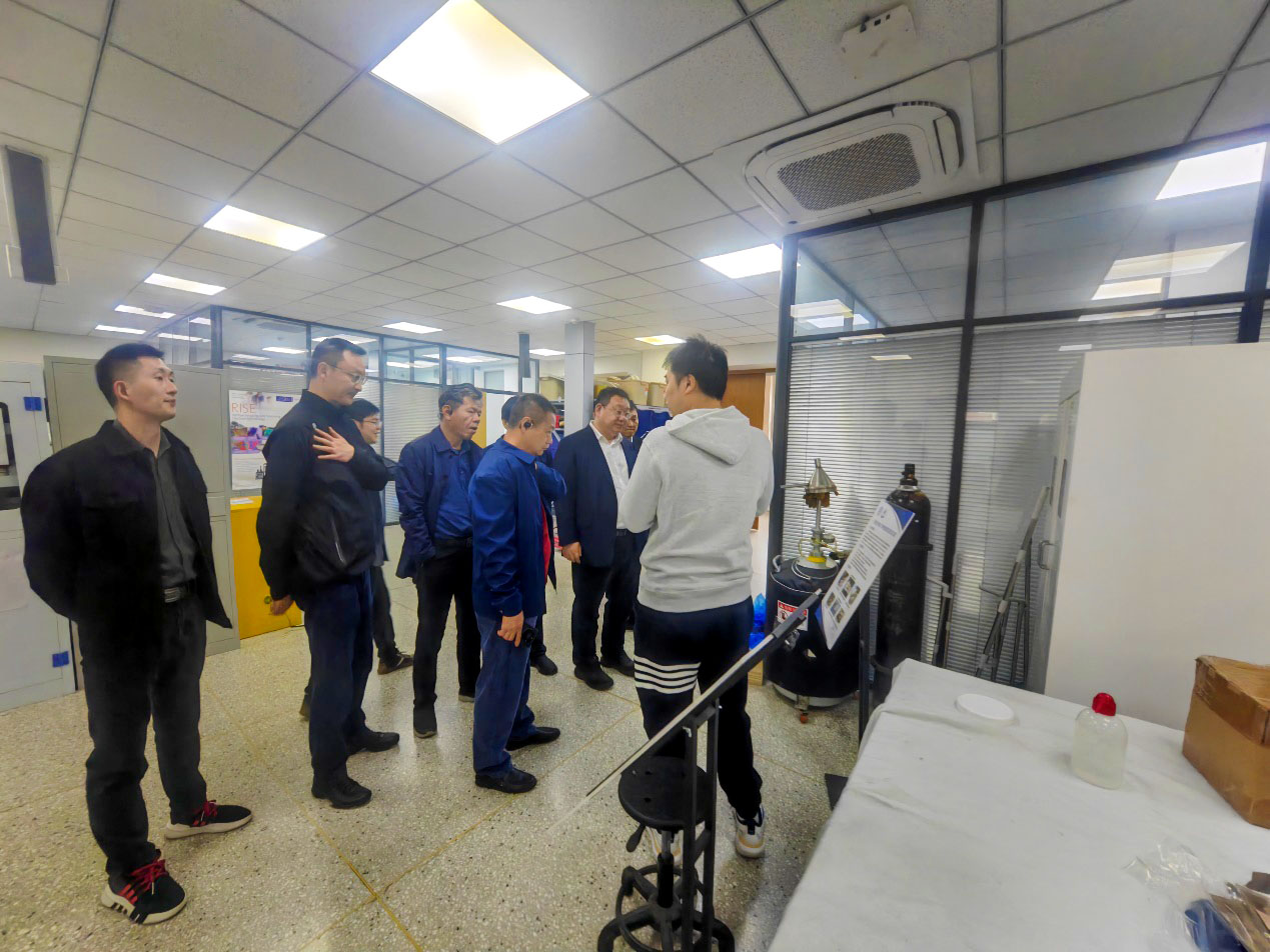 座谈结束后,王小南一行参观了数控装备可靠性教育部重点实验室,齐宝宝、朱博对实验室发展概况和自研试验设备等进行了详细讲解。