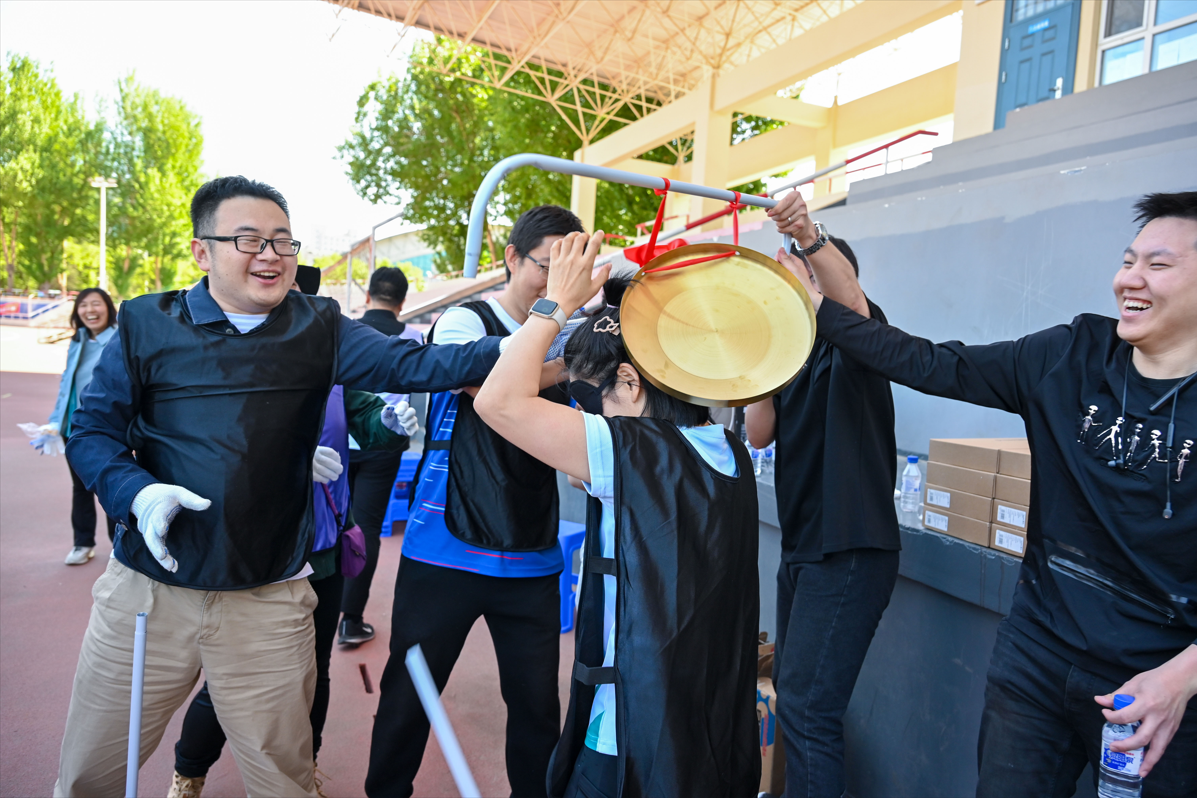 运动会设置了拔河、蒙眼敲锣、托球接力、大丰收、夹乒乓、欢乐套圈等六个项目。蒙眼敲锣中首位出场的王顺,在引导员的正确引导,和“捣乱分子”的积极参与下,成功跑偏,直接把比赛带向高潮。“兵贵神速”的苏丽达,径直奔向锣边的赵克利一通乱锤,成功拆散了锣架、敲响了铜锣。“紫定赢”机电队、“规则破坏者”柴博森,在各项赛事中,心机不断、挖掘潜能,为比赛带来了无尽的欢乐。拔河比赛中,各队伍公平竞争、团结友爱、不断超越、争创佳绩,赛出了团结拼搏、挑战自我的蓬勃锐气和昂扬向上、奋发进取的时代朝气。