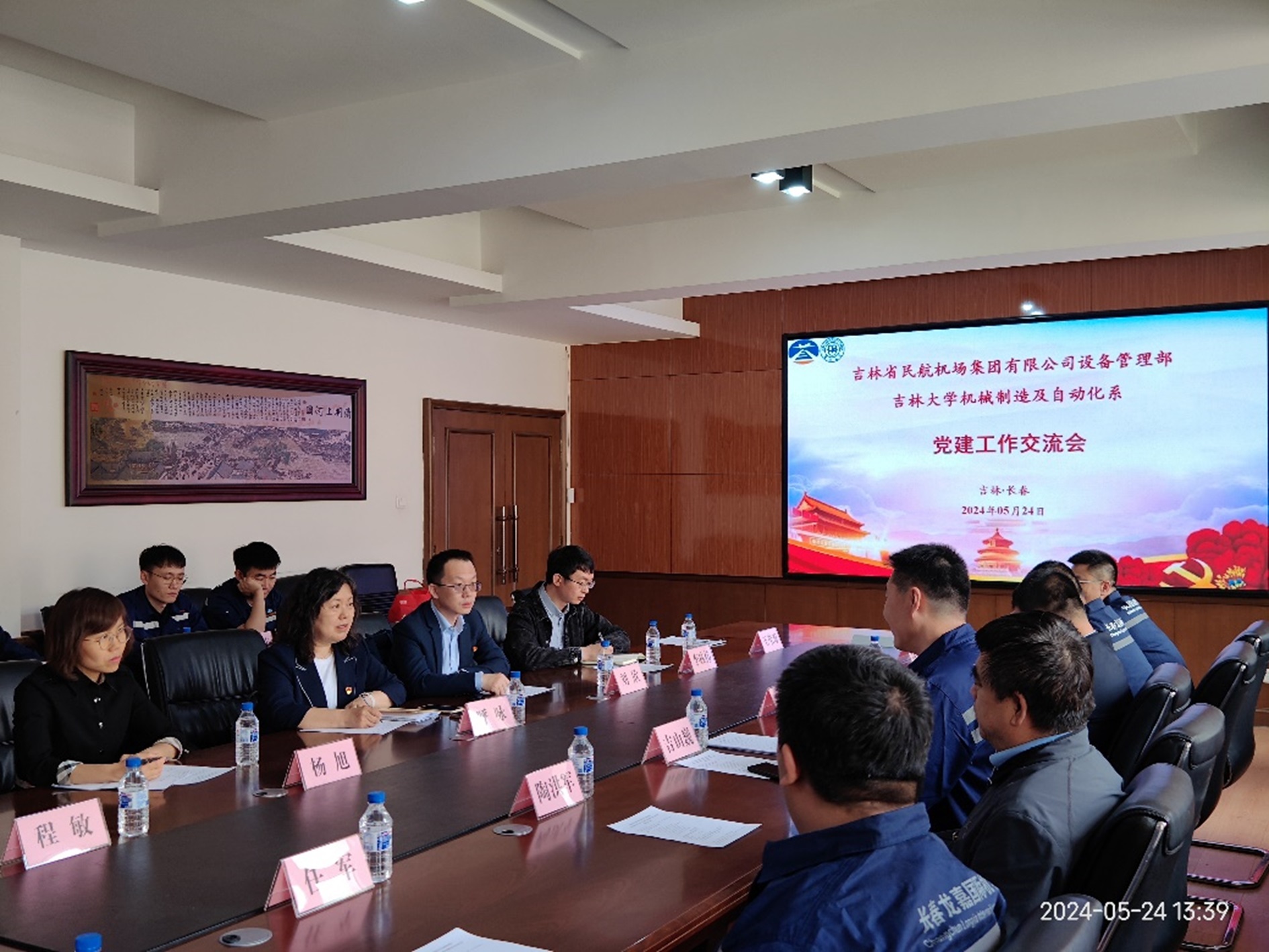 为贯彻落实习近平总书记关于党的建设的重要思想,持续推动党建工作融入中心工作,推进高质量党建引领高质量发展的“一融两高”建设,2024年5月24日,机械制造及自动化系教工党支部与吉林省民航机场集团有限公司设备管理部第一和第二党支部开展了“校企合作共探讨,深度交流促发展”的主题党建交流活动。机械制造及自动化系教工党支部书记呼咏、副书记刘欣,机械制造及自动化系副主任杨旭,吉林省民航机场集团有限公司设备管理部副总经理吉山巍、副总经理陶洪军和副总经理林立群参加了交流活动。