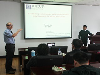 安忠烈博士以“CNT/Graphene-Cu Composite and Its Application”为主题,结合日本东北大学MEMS团队的科学研究来进一步诠释“工匠文化”,详尽地向在场师生阐述了如何原位检测单个细胞的物理性能、如何制备性能优异的CNT/金属纳米复合材料、以及如何基于新型纳米复合材料进一步优化MEMS微镜性能等最新研究成果。安忠烈博士在报告过程中,不断与在场的老师和同学们积极互动,耐心地回答会场上提出的各种问题。
