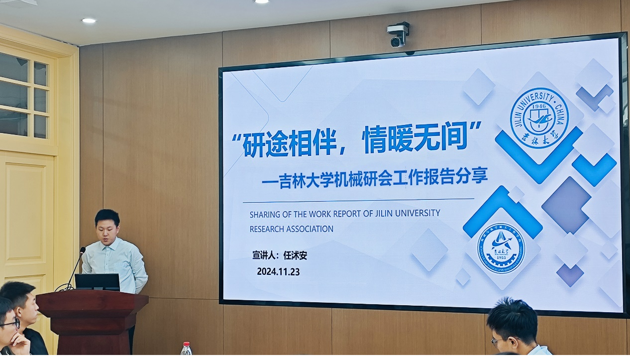 本次交流活动主要由议题交流分享会与历史参观学习两部分构成。11月23日上午,八所高校机械学科研会代表齐聚哈尔滨工业大学机械楼会议室,围绕“院系学科情况及研究生会工作经验分享”以及“重点议题对话交流”两大主题依次展开精彩的分享汇报。公司研究生会执行主席任沭安以“研途相伴,情暖无间”为主题,介绍了公司学科风貌和研会组织架构及工作亮点。他强调,研会工作需全方位融入到每一位员工的日常生活中,秉持全心全意为同学们服务的宗旨,让同学们深切体会到公司浓厚的“家文化”氛围。公司研究生团委常务副书记孙雨治针对“新时代新征程下,研会应如何深入推进员工政治引领工作”进行了详细阐述。他指出,应始终将先进理论贯穿于研会思想政治引领工作的全过程,以确保思想引领工作的先进性与有效性。